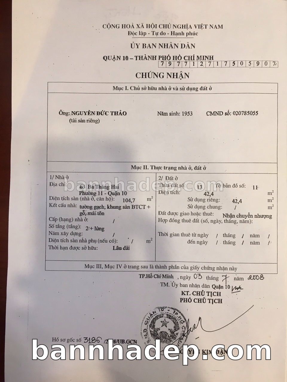 Bán nhà 723 Lê Hồng Phong phường 01 quận 10