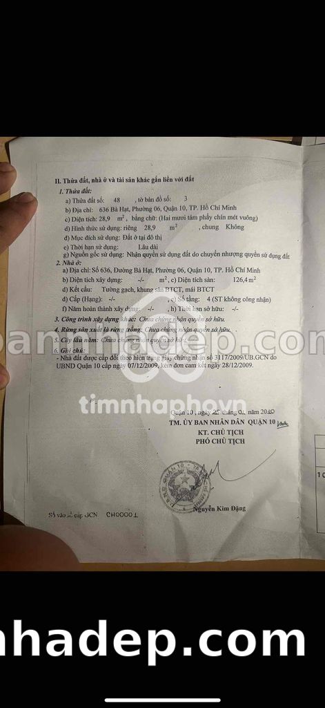 Bán nhà 79CT Tam Đảo phường 01 quận 10