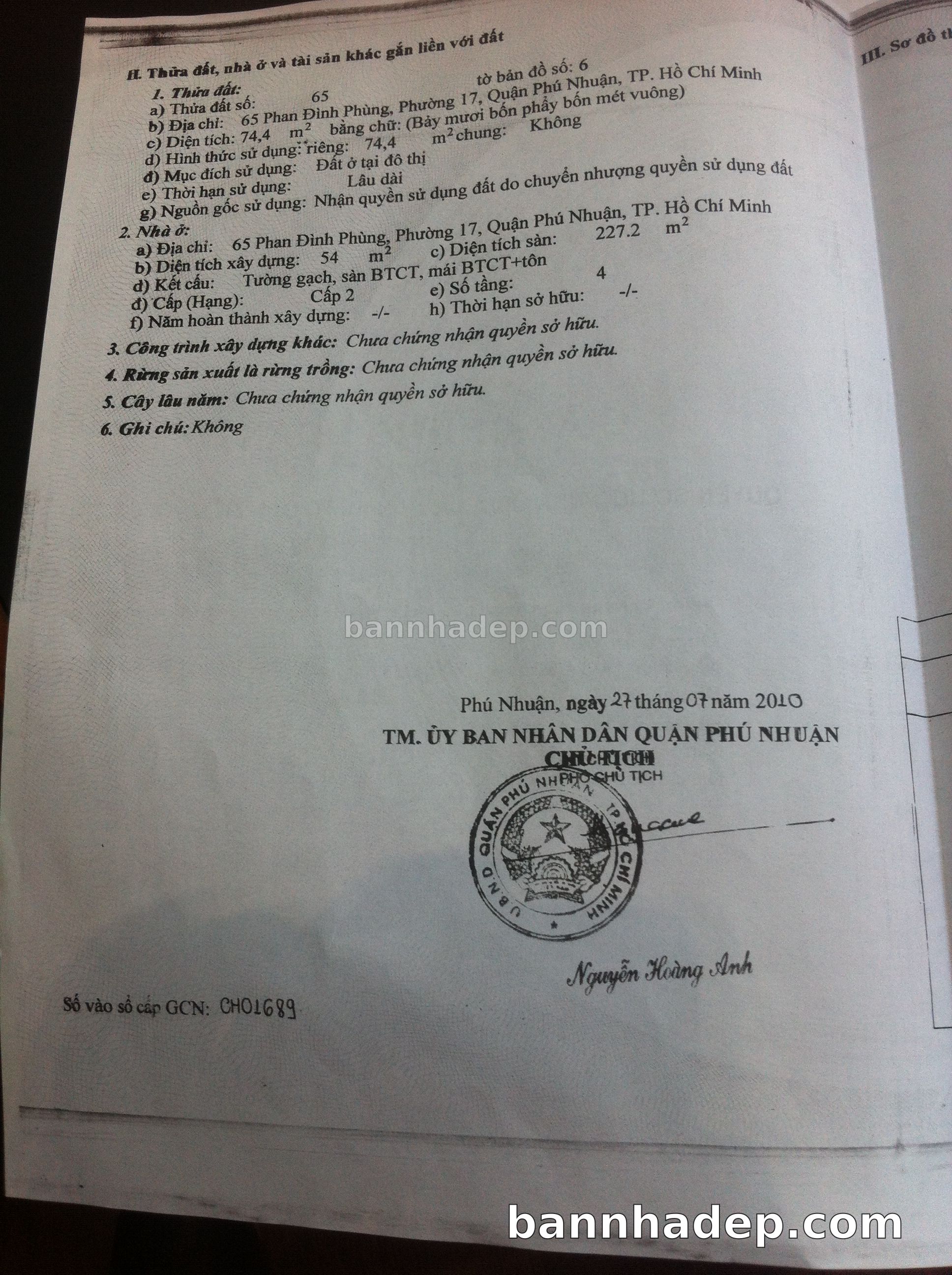 BÁN NHÀ Mặt tiền Số 65 Phan Đình Phùng phường 01 quận Phú Nhuận TP. Hồ Chí Minh – GẦN CÔNG VIÊN GIẢI TRÍ – GIÁ TỐT Cần bán gấp nhà Mặt tiền tại Số 65 Phan Đình Phùng phường 01 quận Phú Nhuận TP. Hồ Chí Minh – tiềm năng kinh doanh cao. Thông tin chi tiết: • Địa chỉ: Số 65 Phan Đình Phùng phường 01 quận Phú Nhuận TP. Hồ Chí Minh • Diện tích: như trong sổ, không gian lý tưởng • Vị trí: Mặt tiền đường Phan Đình Phùng, gần trung tâm thương mại lớn, khu vực sầm uất, tiềm năng kinh doanh cao • Pháp lý: Sổ hồng riêng, không tranh chấp, sẵn sàng giao dịch • Giá bán: Thoả Thuận (còn thương lượng với khách thiện chí) Lợi thế đặc biệt: • Vị trí trung tâm Quận Phú Nhuận • Giao thông thuận tiện, kết nối các quận trung tâm • Phù hợp kinh doanh dài hạn, ổn định • Khu vực sầm uất, tiềm năng kinh doanh tốt