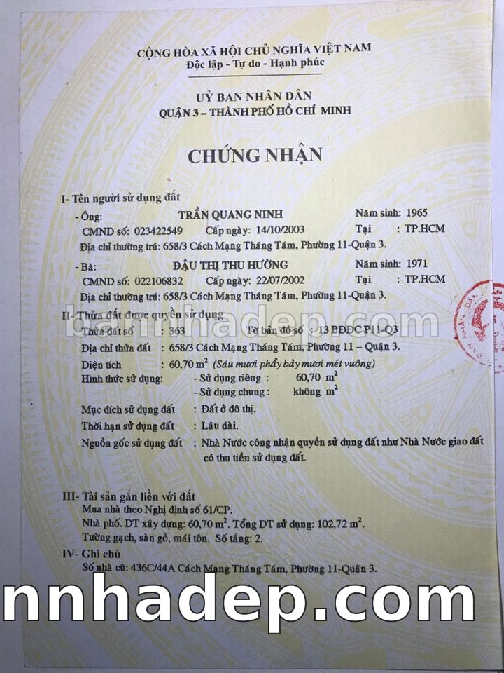 BÁN NHÀ Đường hẻm Số 658/3-5 Cách Mạng Tháng 8 phường 01 quận 3 TP. Hồ Chí Minh – GẦN CÔNG VIÊN GIẢI TRÍ – GIÁ TỐT Cần bán gấp nhà Đường hẻm tại Số 658/3-5 Cách Mạng Tháng 8 phường 01 quận 3 TP. Hồ Chí Minh – tiềm năng kinh doanh cao. Thông tin chi tiết: • Địa chỉ: Số 658/3-5 Cách Mạng Tháng 8 phường 01 quận 3 TP. Hồ Chí Minh • Diện tích: như trong sổ, không gian lý tưởng • Vị trí: Đường hẻm đường Cách Mạng Tháng 8, gần trung tâm thương mại lớn, khu vực sầm uất, tiềm năng kinh doanh cao • Pháp lý: Sổ hồng riêng, không tranh chấp, sẵn sàng giao dịch • Giá bán: Thoả Thuận (còn thương lượng với khách thiện chí) Lợi thế đặc biệt: • Vị trí trung tâm Quận 3 • Giao thông thuận tiện, kết nối các quận trung tâm • Phù hợp kinh doanh dài hạn, ổn định • Khu vực sầm uất, tiềm năng kinh doanh tốt