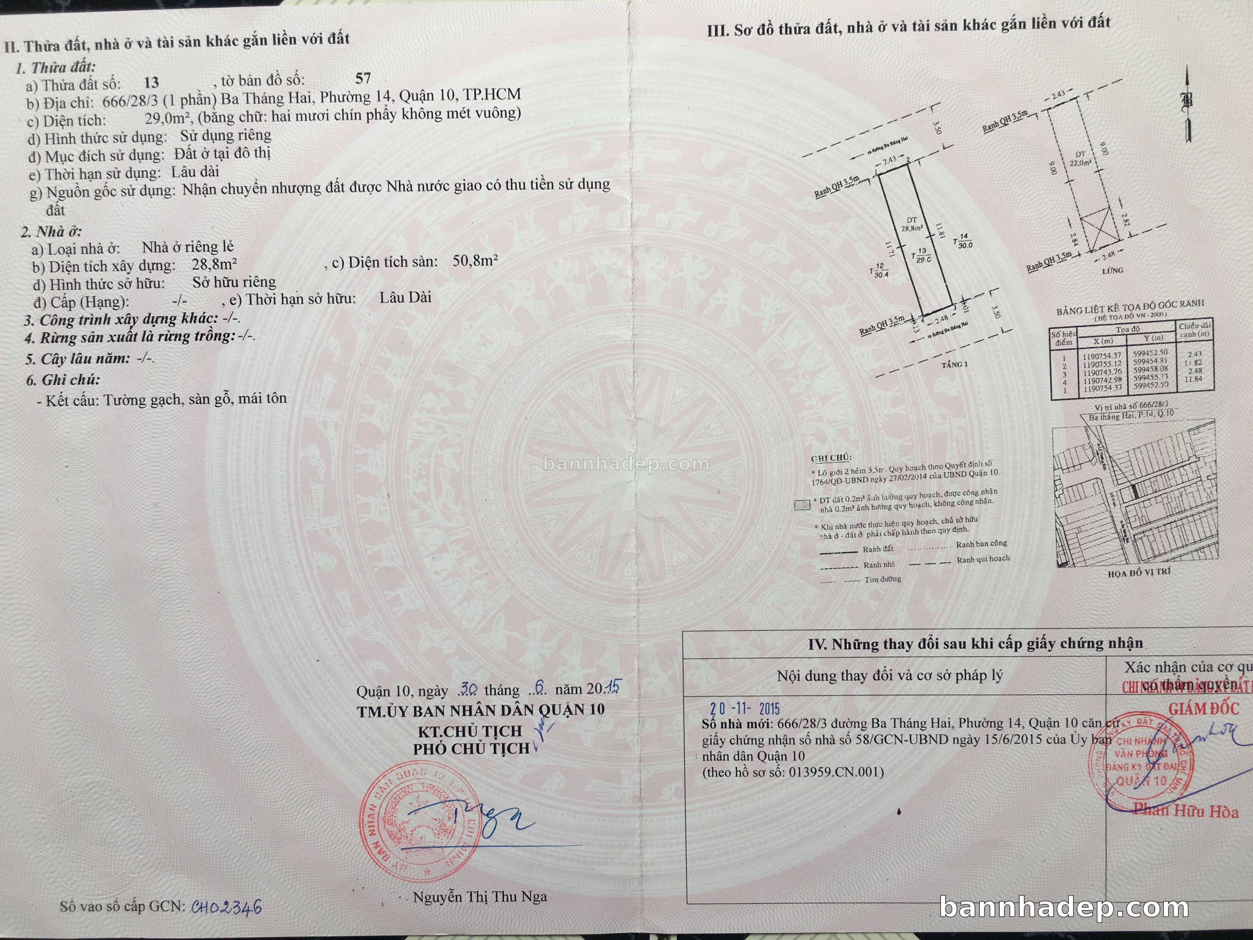 Bán nhà 79CT Tam Đảo phường 01 quận 10