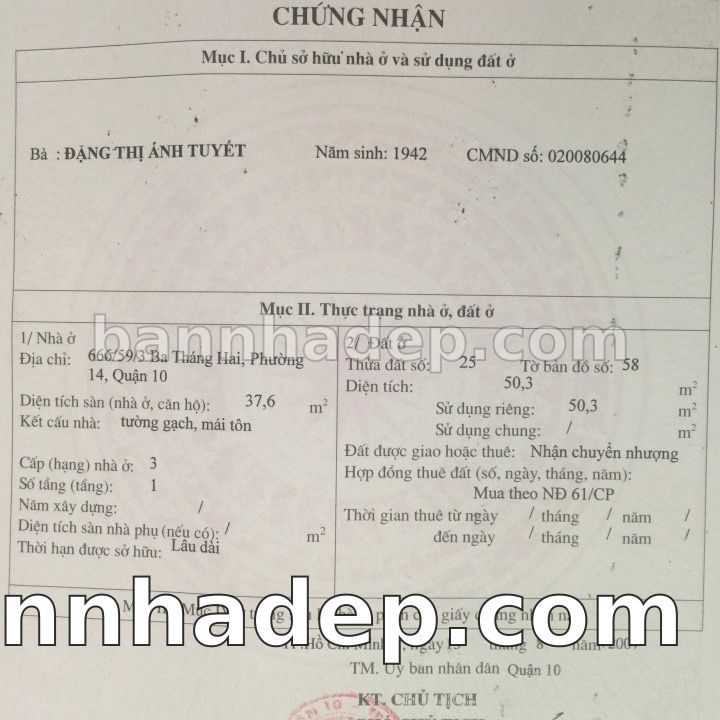 BÁN NHÀ Đường hẻm Số 666/59/3 Ba Tháng Hai phường 01 quận 10 TP. Hồ Chí Minh – GẦN CÔNG VIÊN GIẢI TRÍ – GIÁ TỐT Cần bán gấp nhà Đường hẻm tại Số 666/59/3 Ba Tháng Hai phường 01 quận 10 TP. Hồ Chí Minh – tiềm năng kinh doanh cao. Thông tin chi tiết: • Địa chỉ: Số 666/59/3 Ba Tháng Hai phường 01 quận 10 TP. Hồ Chí Minh • Diện tích: như trong sổ, không gian lý tưởng • Vị trí: Đường hẻm đường Ba Tháng Hai, gần trung tâm thương mại lớn, khu vực sầm uất, tiềm năng kinh doanh cao • Pháp lý: Sổ hồng riêng, không tranh chấp, sẵn sàng giao dịch • Giá bán: Thoả Thuận (còn thương lượng với khách thiện chí) Lợi thế đặc biệt: • Vị trí trung tâm Quận 10 • Giao thông thuận tiện, kết nối các quận trung tâm • Phù hợp kinh doanh dài hạn, ổn định • Khu vực sầm uất, tiềm năng kinh doanh tốt