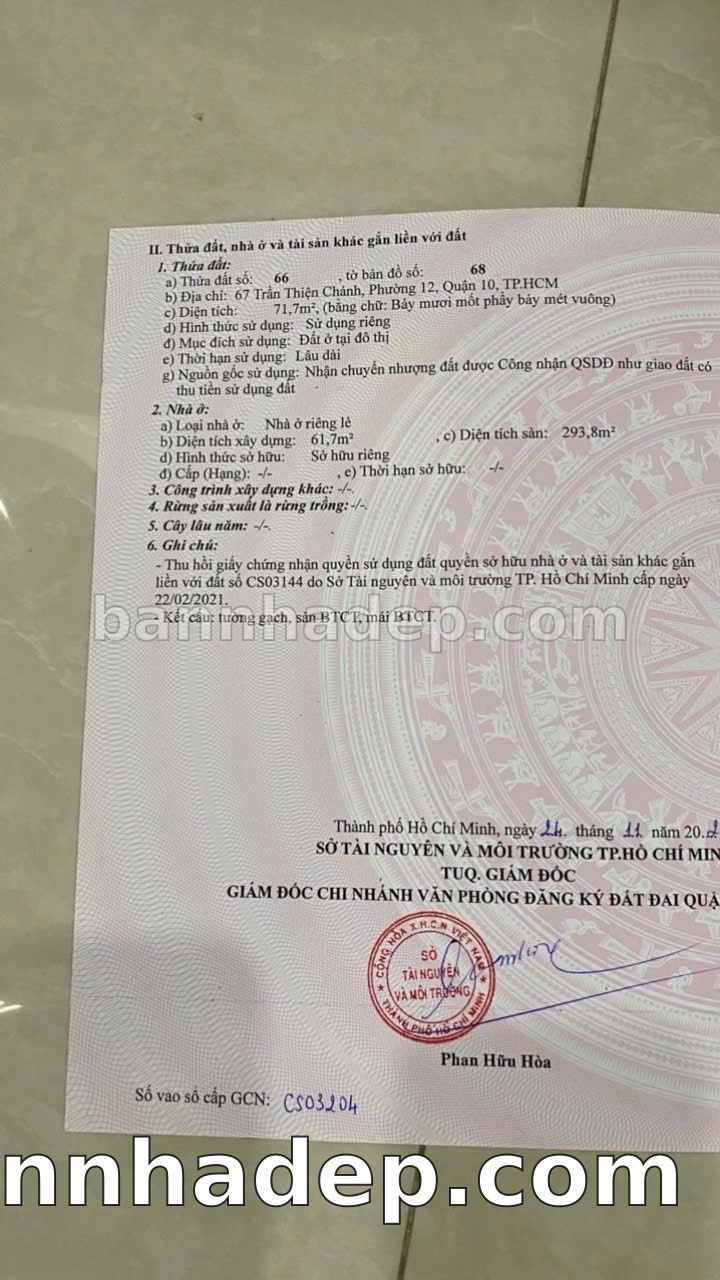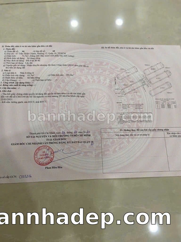CẦN BÁN GẤP NHÀ MẶT TIỀN Số 67 Trần Thiện Chánh Phường 12 Quận 10 TP. Hồ Chí Minh – GẦN CHỢ – GIÁ 30,5 TỶ Cần bán gấp nhà mặt tiền kinh doanh cực đẹp tại Số 67 Trần Thiện Chánh Phường 12 Quận 10 TP. Hồ Chí Minh. Thông tin chi tiết: • Địa chỉ: Số 67 Trần Thiện Chánh Phường 12 Quận 10 TP. Hồ Chí Minh • Diện tích: 4.0m x 20.0m, không gian rộng rãi • Vị trí: Mặt tiền đường Trần Thiện Chánh, gần công viên, khu vực sầm uất, tiềm năng cao • Pháp lý: Sổ hồng riêng, không tranh chấp, sẵn sàng giao dịch • Giá bán: 30,5 Tỷ (giá tốt cho khách thiện chí) Ưu thế cạnh tranh: • Phù hợp kinh doanh dài hạn, ổn định • Khu vực sầm uất, tiềm năng kinh doanh tốt • Mặt tiền rộng, giá trị khai thác thương mại cao • Vị trí trung tâm Quận 10, thuận tiện kết nối Quận 1, 3, 10
