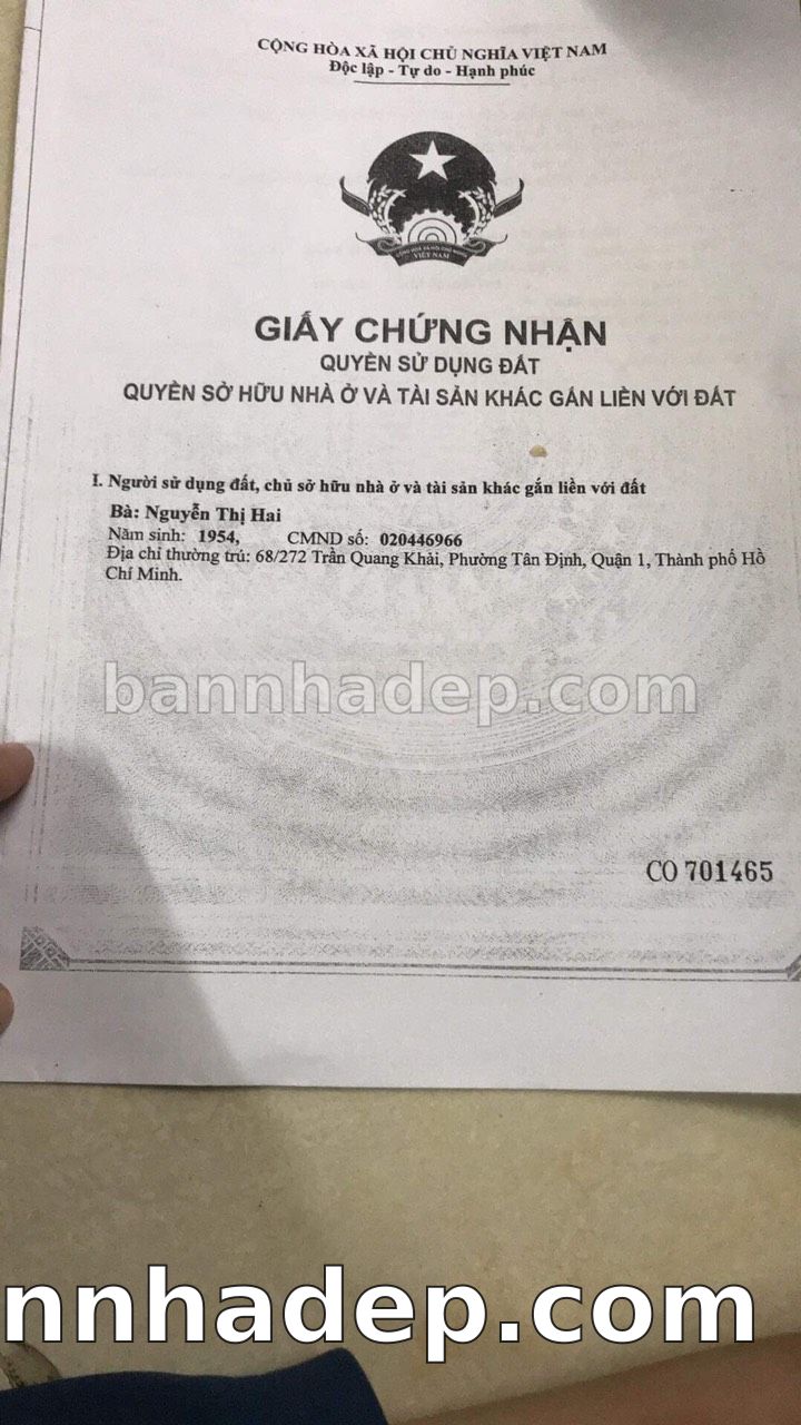 BÁN NHÀ Đường hẻm Số 68/272 Trần Quang Khải phường Tân Định quận 1 TP. Hồ Chí Minh – GẦN CÔNG VIÊN GIẢI TRÍ – GIÁ TỐT Cần bán gấp nhà Đường hẻm tại Số 68/272 Trần Quang Khải phường Tân Định quận 1 TP. Hồ Chí Minh – tiềm năng kinh doanh cao. Thông tin chi tiết: • Địa chỉ: Số 68/272 Trần Quang Khải phường Tân Định quận 1 TP. Hồ Chí Minh • Diện tích: như trong sổ, không gian lý tưởng • Vị trí: Đường hẻm đường Trần Quang Khải, gần trung tâm thương mại lớn, khu vực sầm uất, tiềm năng kinh doanh cao • Pháp lý: Sổ hồng riêng, không tranh chấp, sẵn sàng giao dịch • Giá bán: Thoả Thuận (còn thương lượng với khách thiện chí) Lợi thế đặc biệt: • Vị trí trung tâm Quận 1 • Giao thông thuận tiện, kết nối các quận trung tâm • Phù hợp kinh doanh dài hạn, ổn định • Khu vực sầm uất, tiềm năng kinh doanh tốt