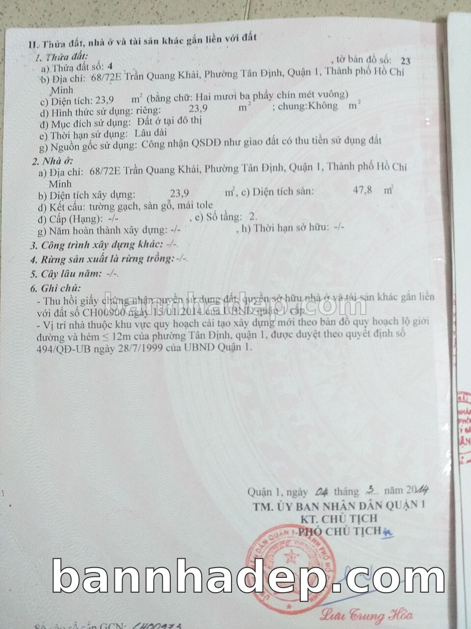 BÁN NHÀ Đường hẻm Số 68/72E Trần Quang Khải phường Tân Định quận 1 TP. Hồ Chí Minh – GẦN CÔNG VIÊN GIẢI TRÍ – GIÁ TỐT Cần bán gấp nhà Đường hẻm tại Số 68/72E Trần Quang Khải phường Tân Định quận 1 TP. Hồ Chí Minh – tiềm năng kinh doanh cao. Thông tin chi tiết: • Địa chỉ: Số 68/72E Trần Quang Khải phường Tân Định quận 1 TP. Hồ Chí Minh • Diện tích: như trong sổ, không gian lý tưởng • Vị trí: Đường hẻm đường Trần Quang Khải, gần trung tâm thương mại lớn, khu vực sầm uất, tiềm năng kinh doanh cao • Pháp lý: Sổ hồng riêng, không tranh chấp, sẵn sàng giao dịch • Giá bán: Thoả Thuận (còn thương lượng với khách thiện chí) Lợi thế đặc biệt: • Vị trí trung tâm Quận 1 • Giao thông thuận tiện, kết nối các quận trung tâm • Phù hợp kinh doanh dài hạn, ổn định • Khu vực sầm uất, tiềm năng kinh doanh tốt
