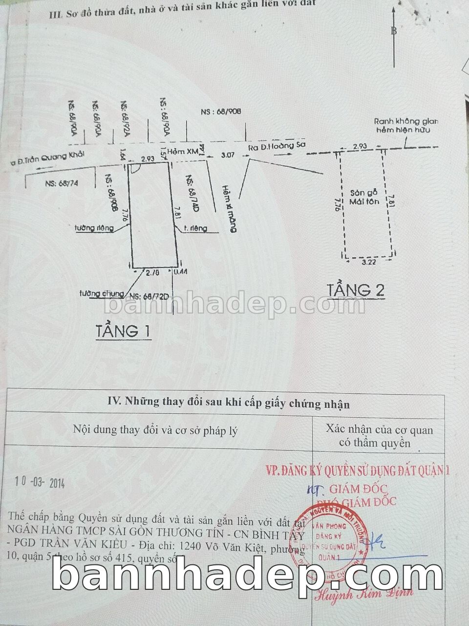Bán nhà 68/72E Trần Quang Khải phường Tân Định quận 1