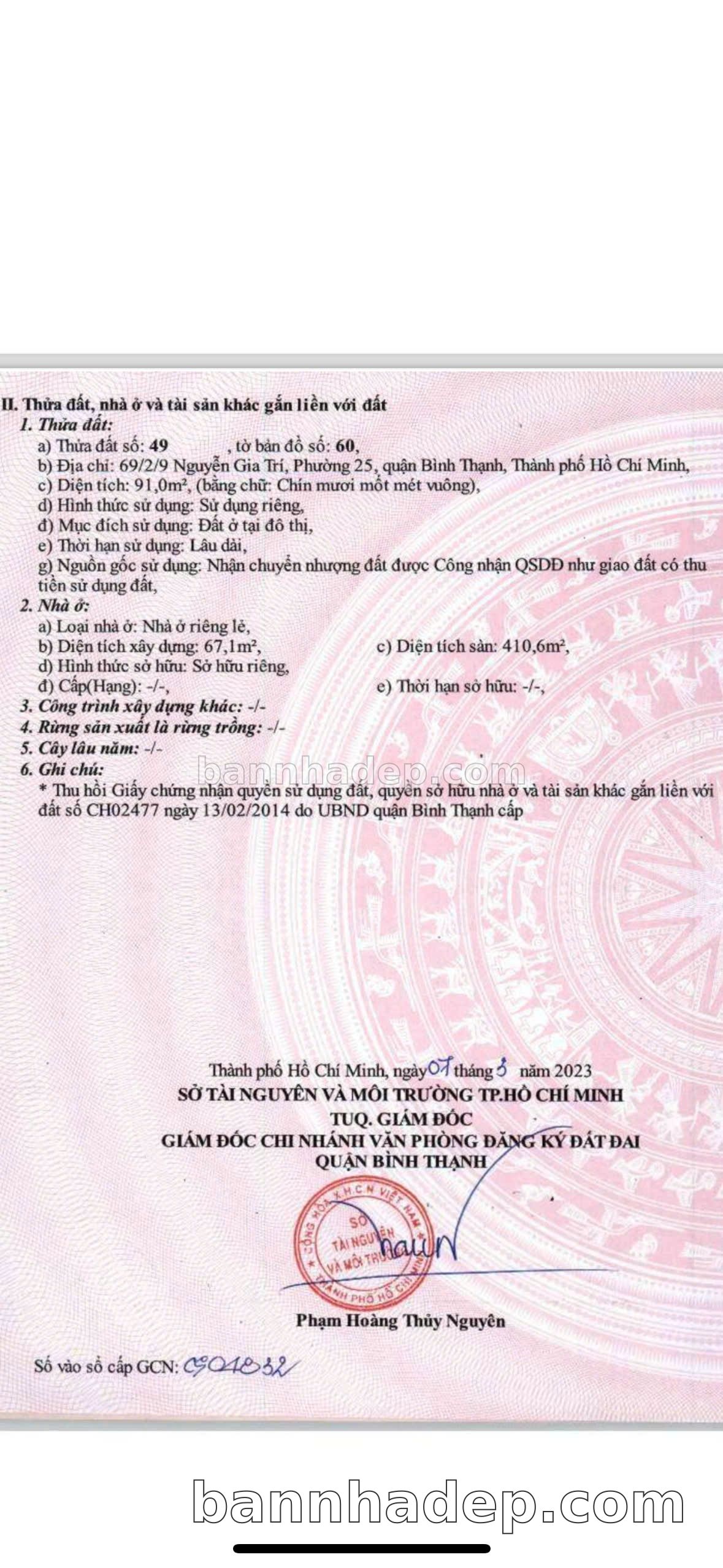 Bán nhà 69/2/9-9A Nguyễn Gia Trí phường 25 quận Bình Thạnh