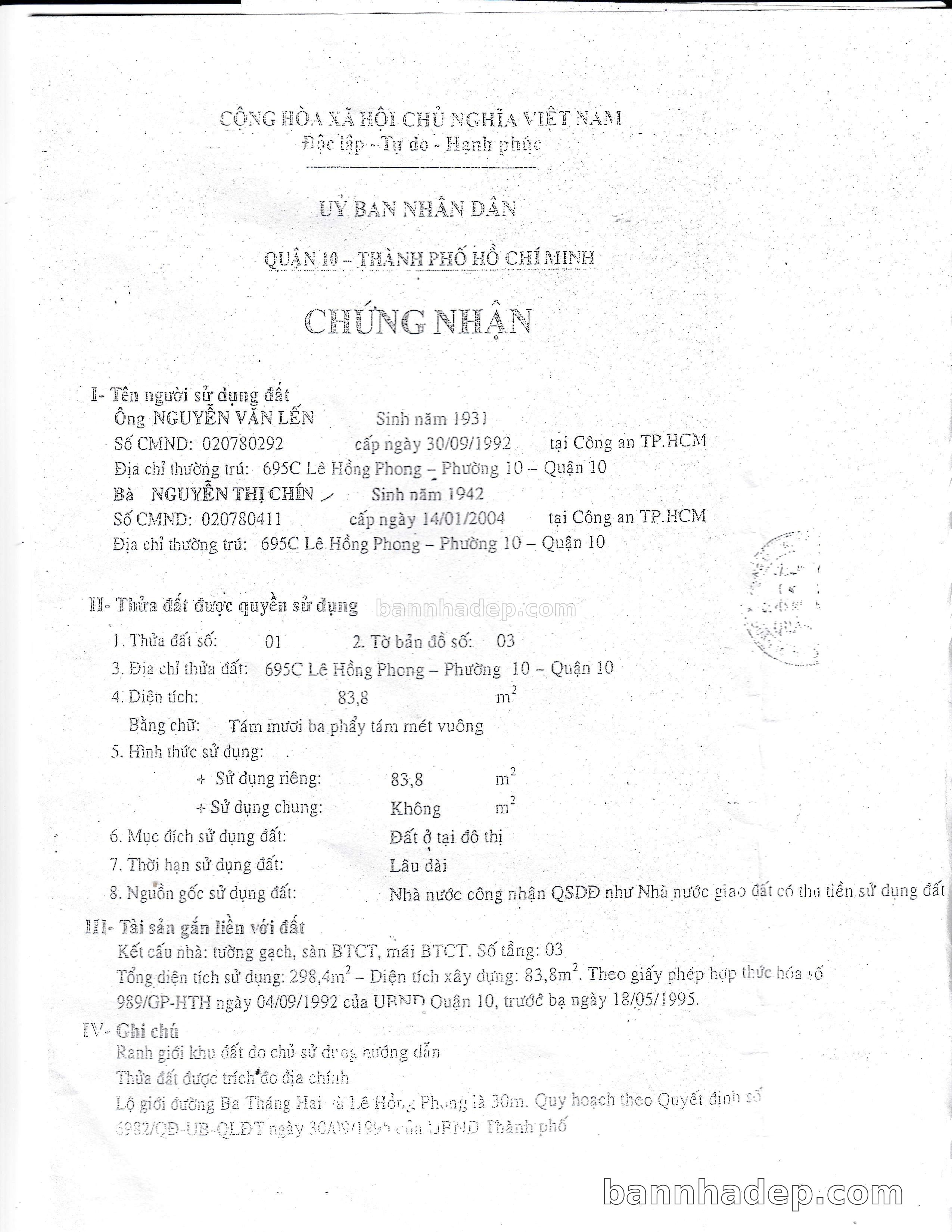 Bán nhà 695C Lê Hồng Phong phường 01 quận 10