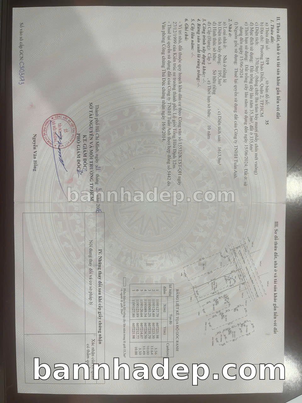 BÁN NHÀ MẶT TIỀN Số 6A Tống Hữu Định Phường Thảo Điền Thủ Đức TP. Hồ Chí Minh – GẦN TRUNG TÂM THƯƠNG MẠI LỚN – GIÁ TỐT 143 TỶ Bán nhà mặt tiền tại Số 6A Tống Hữu Định Phường Thảo Điền Thủ Đức TP. Hồ Chí Minh. Thông tin chi tiết: • Địa chỉ: Số 6A Tống Hữu Định Phường Thảo Điền Thủ Đức TP. Hồ Chí Minh • Diện tích: 10.0m x 37.0m, phù hợp kinh doanh • Vị trí: Mặt tiền đường Tống Hữu Định, gần công viên giải trí, khu vực sầm uất, đông đúc • Pháp lý: Sổ hồng riêng, quy hoạch rõ ràng, sẵn sàng sang tên • Giá bán: 143 Tỷ (còn thương lượng với khách thiện chí) Lợi thế đặc biệt: • Mặt tiền rộng, giá trị khai thác thương mại cao • Khu vực sầm uất, tiềm năng kinh doanh tốt • Gần các tiện ích quan trọng: chợ, trường học, bệnh viện, công viên • Vị trí trung tâm Thủ Đức, thuận tiện kết nối Quận 1, 2, 7