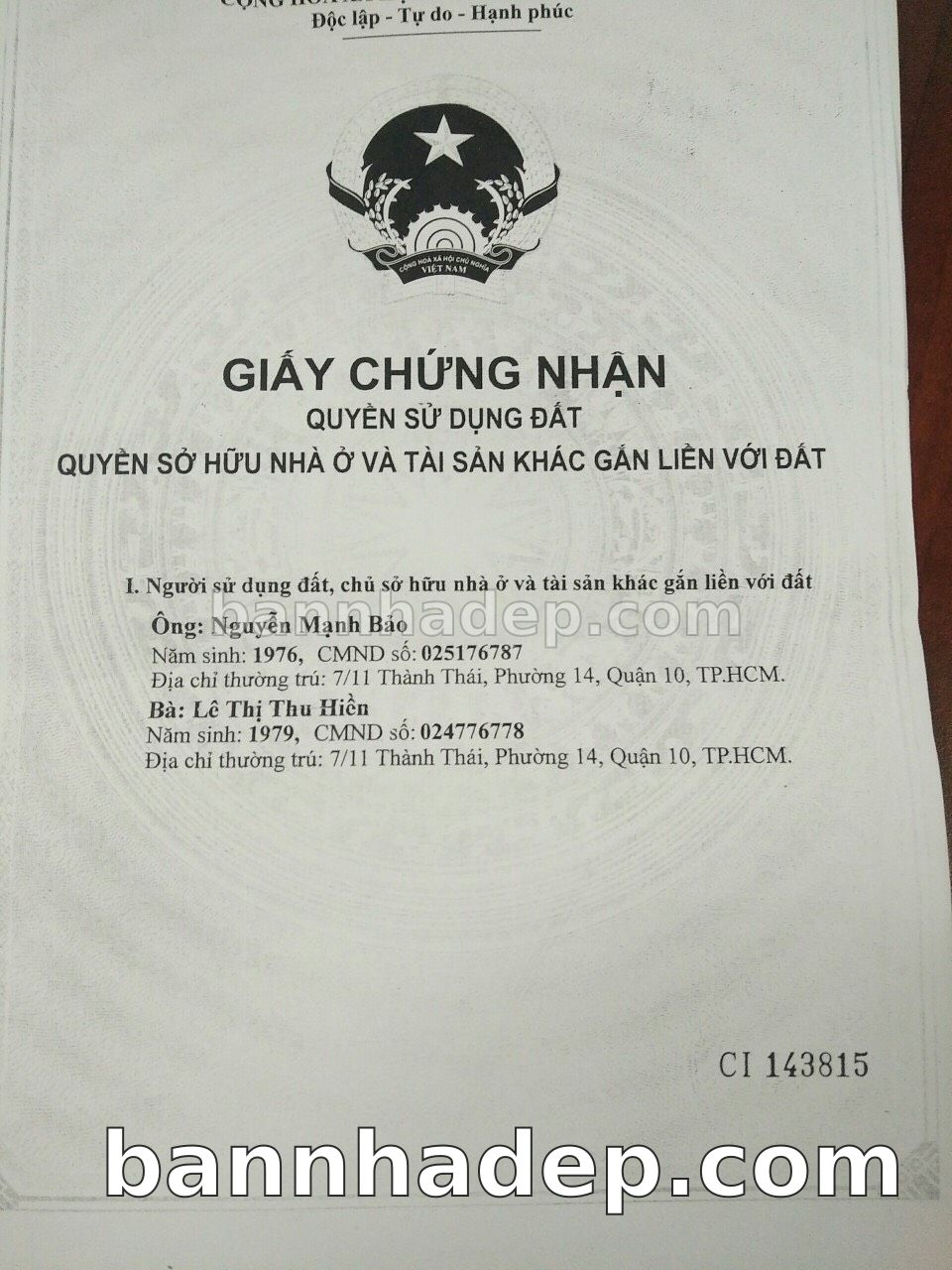 Bán nhà 79CT Tam Đảo phường 01 quận 10