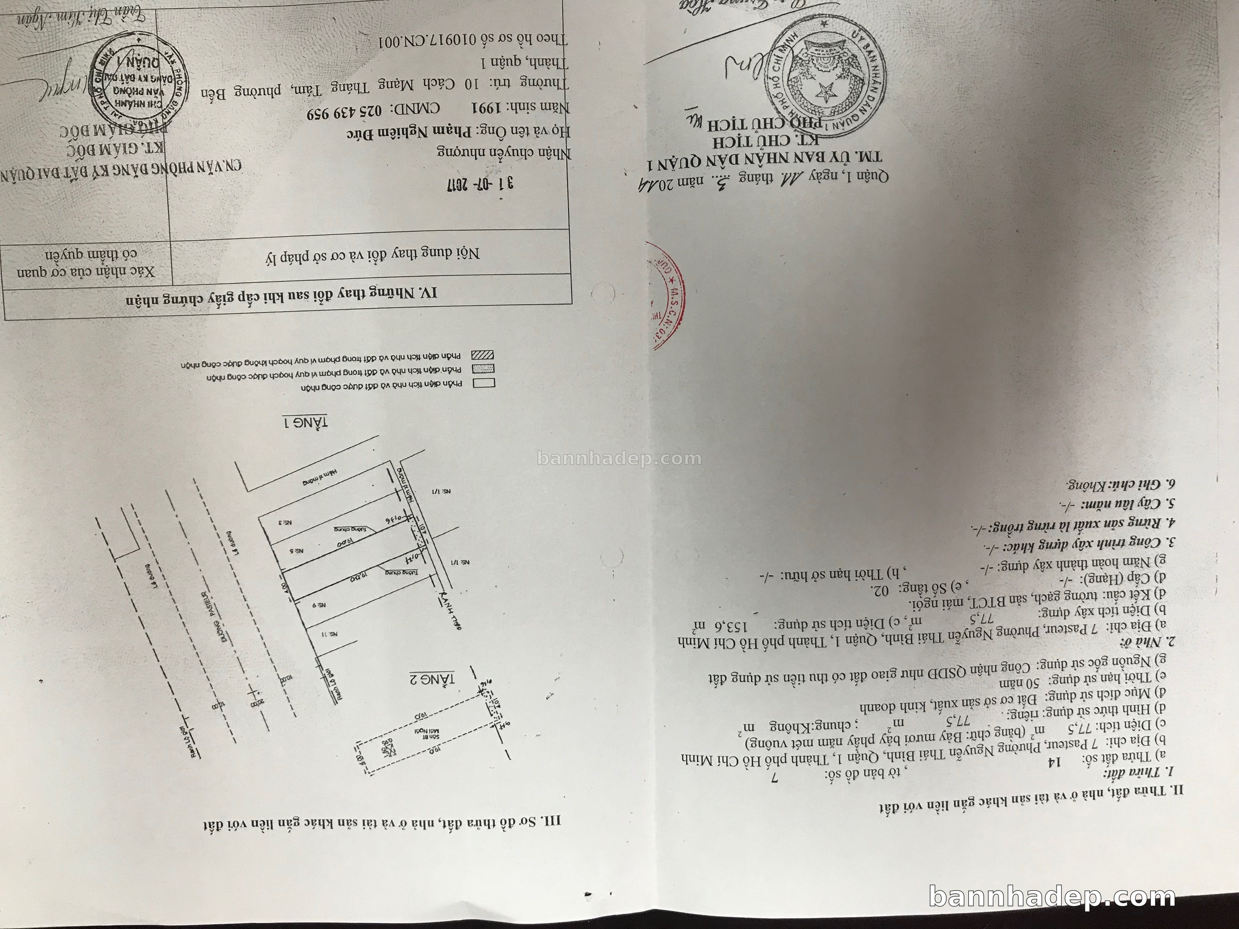 BÁN NHÀ Mặt tiền Số 7-9-13 Pasteur phường Nguyễn Thái Bình quận 1 TP. Hồ Chí Minh – GẦN CÔNG VIÊN GIẢI TRÍ – GIÁ TỐT Cần bán gấp nhà Mặt tiền tại Số 7-9-13 Pasteur phường Nguyễn Thái Bình quận 1 TP. Hồ Chí Minh – tiềm năng kinh doanh cao. Thông tin chi tiết: • Địa chỉ: Số 7-9-13 Pasteur phường Nguyễn Thái Bình quận 1 TP. Hồ Chí Minh • Diện tích: như trong sổ, không gian lý tưởng • Vị trí: Mặt tiền đường Pasteur, gần trung tâm thương mại lớn, khu vực sầm uất, tiềm năng kinh doanh cao • Pháp lý: Sổ hồng riêng, không tranh chấp, sẵn sàng giao dịch • Giá bán: Thoả Thuận (còn thương lượng với khách thiện chí) Lợi thế đặc biệt: • Vị trí trung tâm Quận 1 • Giao thông thuận tiện, kết nối các quận trung tâm • Phù hợp kinh doanh dài hạn, ổn định • Khu vực sầm uất, tiềm năng kinh doanh tốt