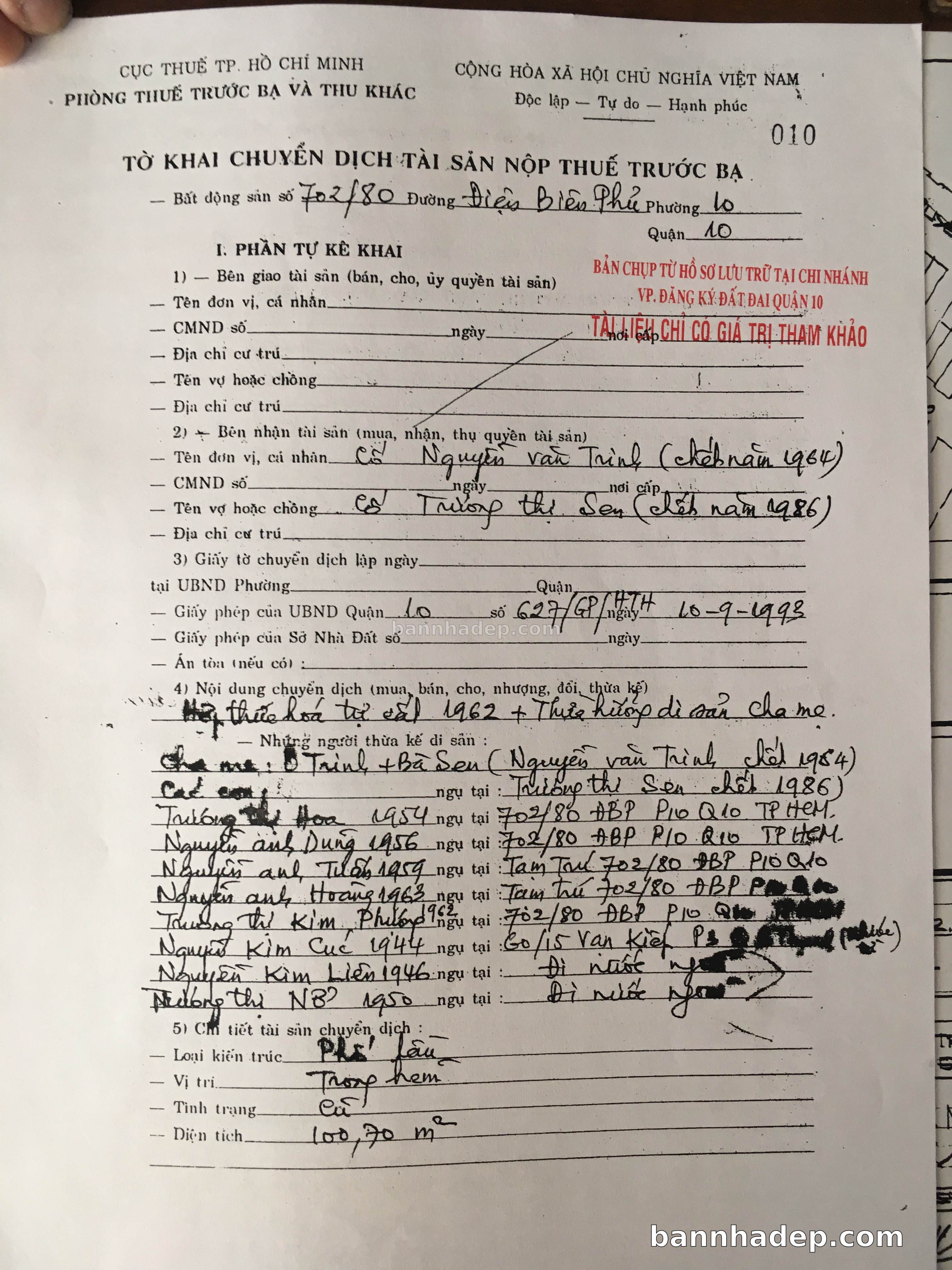 Bán nhà 702/80 Điện Biên Phủ phường 01 quận 10