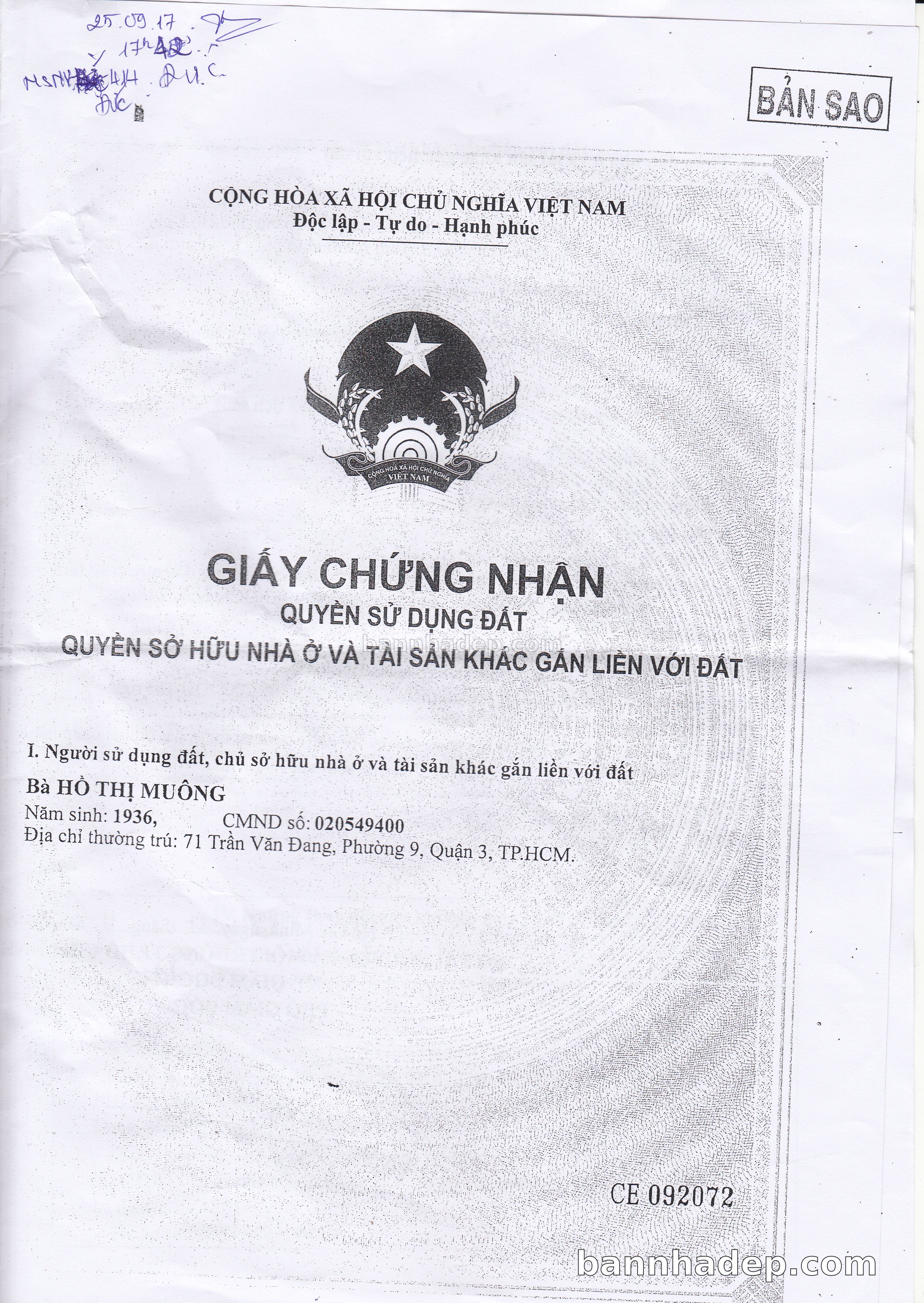 Bán nhà 71 Trần Văn Đang phường 09 quận 3