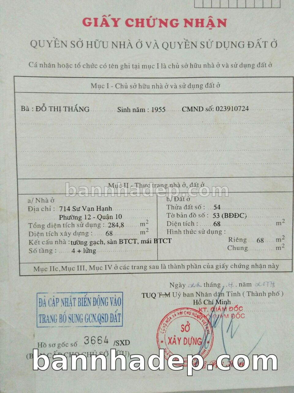 Bán nhà 714 Sư Vạn Hạnh phường 01 quận 10