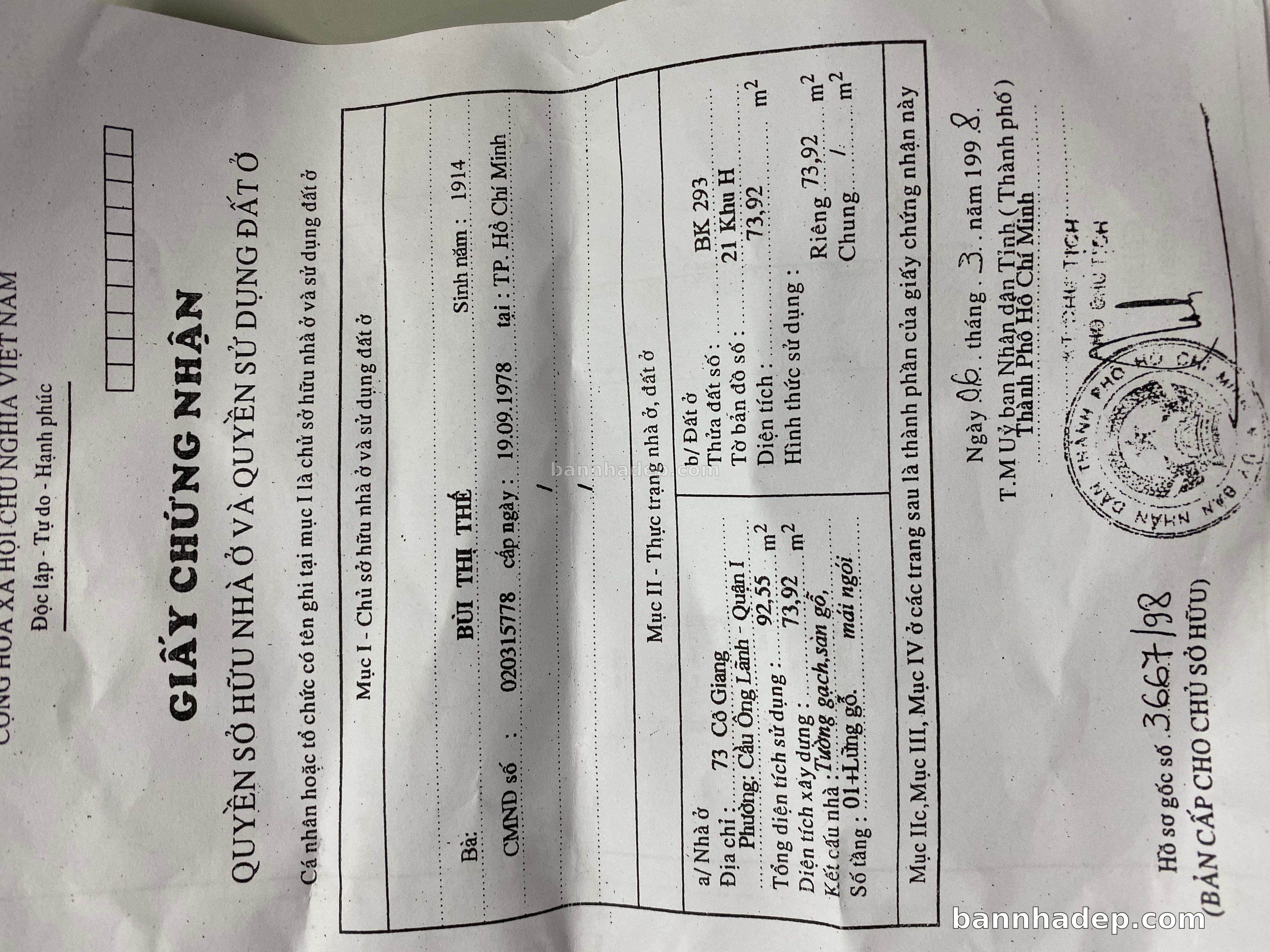 Bán nhà 73 Cô Giang phường Cầu Ông Lãnh quận 1