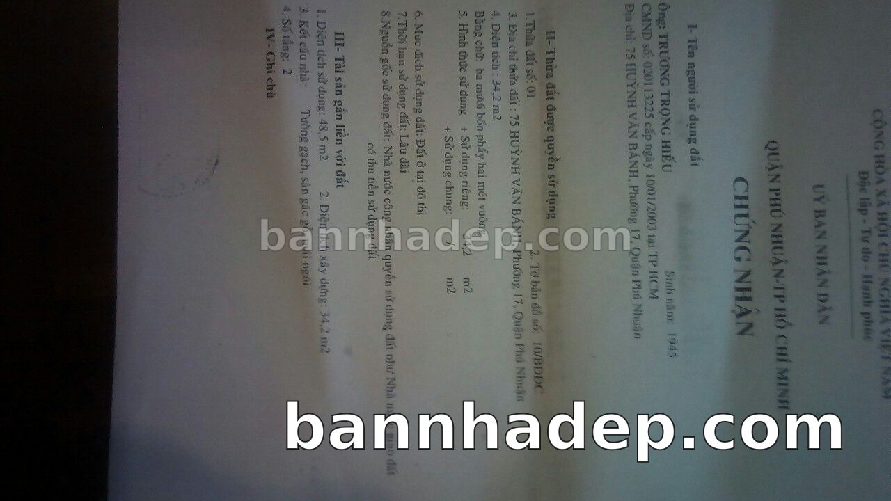 BÁN NHÀ Mặt tiền Số 75 Huỳnh Văn Bánh phường 01 quận Phú Nhuận TP. Hồ Chí Minh – GẦN CÔNG VIÊN GIẢI TRÍ – GIÁ TỐT Cần bán gấp nhà Mặt tiền tại Số 75 Huỳnh Văn Bánh phường 01 quận Phú Nhuận TP. Hồ Chí Minh – tiềm năng kinh doanh cao. Thông tin chi tiết: • Địa chỉ: Số 75 Huỳnh Văn Bánh phường 01 quận Phú Nhuận TP. Hồ Chí Minh • Diện tích: như trong sổ, không gian lý tưởng • Vị trí: Mặt tiền đường Huỳnh Văn Bánh, gần trung tâm thương mại lớn, khu vực sầm uất, tiềm năng kinh doanh cao • Pháp lý: Sổ hồng riêng, không tranh chấp, sẵn sàng giao dịch • Giá bán: Thoả Thuận (còn thương lượng với khách thiện chí) Lợi thế đặc biệt: • Vị trí trung tâm Quận Phú Nhuận • Giao thông thuận tiện, kết nối các quận trung tâm • Phù hợp kinh doanh dài hạn, ổn định • Khu vực sầm uất, tiềm năng kinh doanh tốt