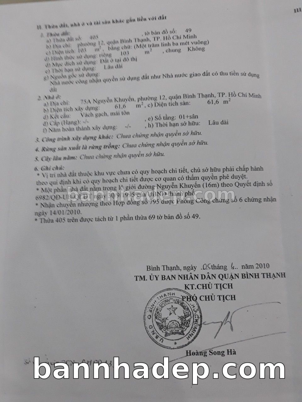 BÁN NHÀ Mặt tiền Số 75A Nguyễn Khuyến phường 01 quận Bình Thạnh TP. Hồ Chí Minh – GẦN CÔNG VIÊN GIẢI TRÍ – GIÁ TỐT Cần bán gấp nhà Mặt tiền tại Số 75A Nguyễn Khuyến phường 01 quận Bình Thạnh TP. Hồ Chí Minh – tiềm năng kinh doanh cao. Thông tin chi tiết: • Địa chỉ: Số 75A Nguyễn Khuyến phường 01 quận Bình Thạnh TP. Hồ Chí Minh • Diện tích: như trong sổ, không gian lý tưởng • Vị trí: Mặt tiền đường Nguyễn Khuyến, gần trung tâm thương mại lớn, khu vực sầm uất, tiềm năng kinh doanh cao • Pháp lý: Sổ hồng riêng, không tranh chấp, sẵn sàng giao dịch • Giá bán: Thoả Thuận (còn thương lượng với khách thiện chí) Lợi thế đặc biệt: • Vị trí trung tâm Quận Bình Thạnh • Giao thông thuận tiện, kết nối các quận trung tâm • Phù hợp kinh doanh dài hạn, ổn định • Khu vực sầm uất, tiềm năng kinh doanh tốt