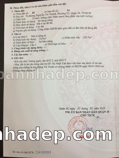 BÁN NHÀ Mặt tiền Số 76 Nguyễn Chí Thanh phường 02 quận 10 TP. Hồ Chí Minh – GẦN CÔNG VIÊN GIẢI TRÍ – GIÁ TỐT Cần bán gấp nhà Mặt tiền tại Số 76 Nguyễn Chí Thanh phường 02 quận 10 TP. Hồ Chí Minh – tiềm năng kinh doanh cao. Thông tin chi tiết: • Địa chỉ: Số 76 Nguyễn Chí Thanh phường 02 quận 10 TP. Hồ Chí Minh • Diện tích: như trong sổ, không gian lý tưởng • Vị trí: Mặt tiền đường Nguyễn Chí Thanh, gần trung tâm thương mại lớn, khu vực sầm uất, tiềm năng kinh doanh cao • Pháp lý: Sổ hồng riêng, không tranh chấp, sẵn sàng giao dịch • Giá bán: Thoả Thuận (còn thương lượng với khách thiện chí) Lợi thế đặc biệt: • Vị trí trung tâm Quận 10 • Giao thông thuận tiện, kết nối các quận trung tâm • Phù hợp kinh doanh dài hạn, ổn định • Khu vực sầm uất, tiềm năng kinh doanh tốt