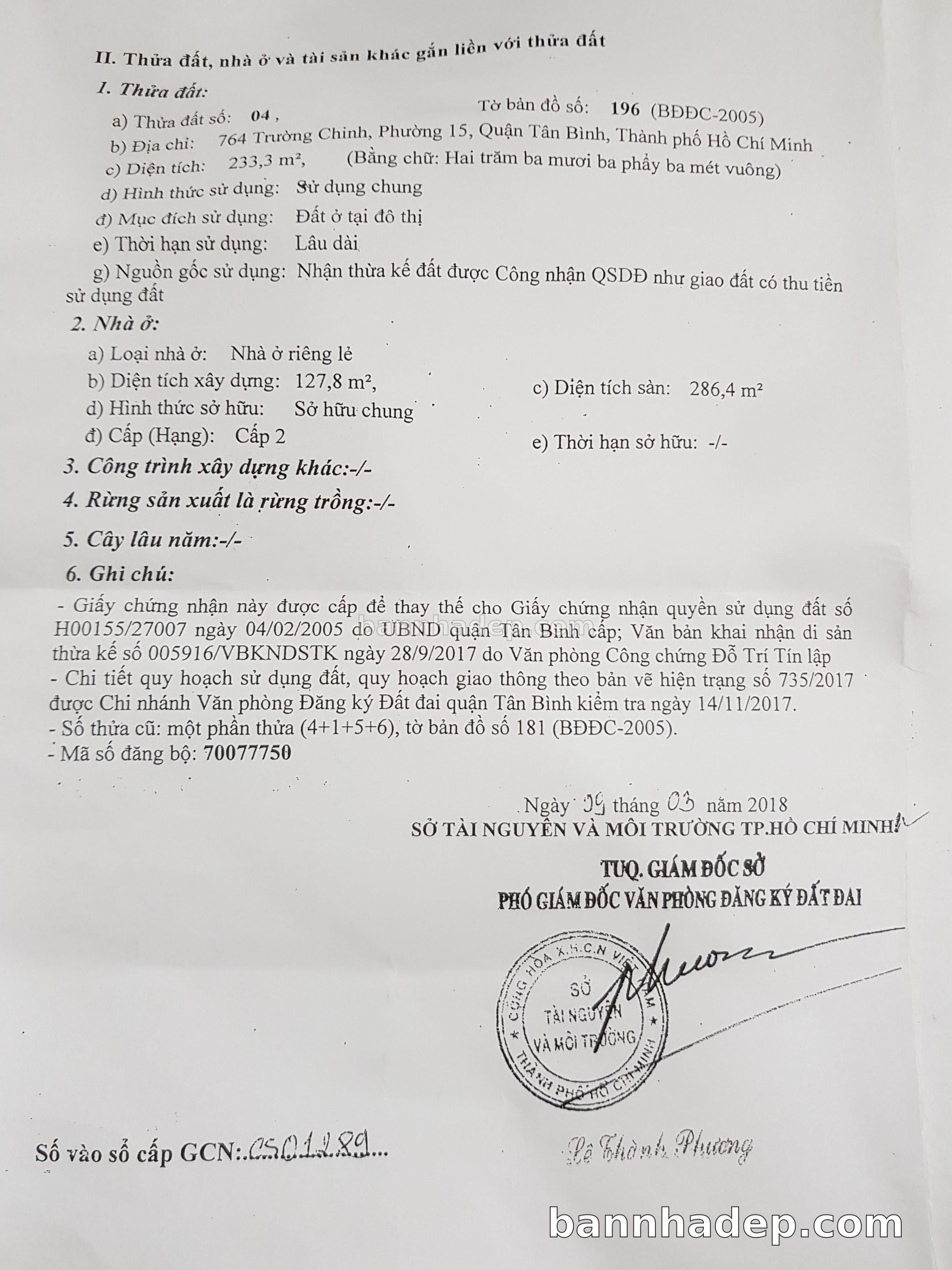BÁN NHÀ Mặt tiền Số 764 Trường Chinh phường 01 quận Tân Bình TP. Hồ Chí Minh – GẦN CÔNG VIÊN GIẢI TRÍ – GIÁ TỐT Cần bán gấp nhà Mặt tiền tại Số 764 Trường Chinh phường 01 quận Tân Bình TP. Hồ Chí Minh – tiềm năng kinh doanh cao. Thông tin chi tiết: • Địa chỉ: Số 764 Trường Chinh phường 01 quận Tân Bình TP. Hồ Chí Minh • Diện tích: như trong sổ, không gian lý tưởng • Vị trí: Mặt tiền đường Trường Chinh, gần trung tâm thương mại lớn, khu vực sầm uất, tiềm năng kinh doanh cao • Pháp lý: Sổ hồng riêng, không tranh chấp, sẵn sàng giao dịch • Giá bán: Thoả Thuận (còn thương lượng với khách thiện chí) Lợi thế đặc biệt: • Vị trí trung tâm Quận Tân Bình • Giao thông thuận tiện, kết nối các quận trung tâm • Phù hợp kinh doanh dài hạn, ổn định • Khu vực sầm uất, tiềm năng kinh doanh tốt