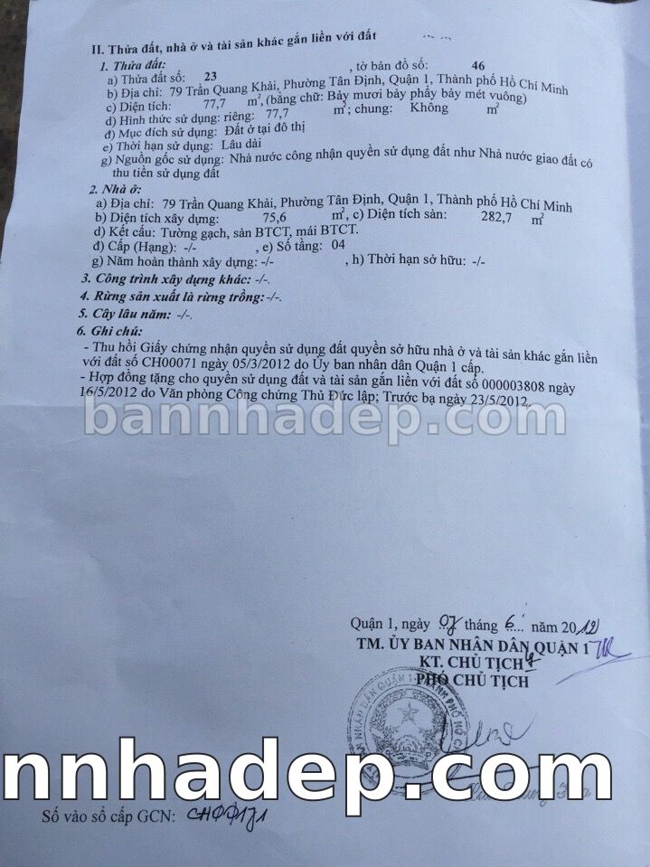 BÁN NHÀ Mặt tiền Số 79 Trần Quang Khải phường Tân Định quận 1 TP. Hồ Chí Minh – GẦN CÔNG VIÊN GIẢI TRÍ – GIÁ TỐT Cần bán gấp nhà Mặt tiền tại Số 79 Trần Quang Khải phường Tân Định quận 1 TP. Hồ Chí Minh – tiềm năng kinh doanh cao. Thông tin chi tiết: • Địa chỉ: Số 79 Trần Quang Khải phường Tân Định quận 1 TP. Hồ Chí Minh • Diện tích: như trong sổ, không gian lý tưởng • Vị trí: Mặt tiền đường Trần Quang Khải, gần trung tâm thương mại lớn, khu vực sầm uất, tiềm năng kinh doanh cao • Pháp lý: Sổ hồng riêng, không tranh chấp, sẵn sàng giao dịch • Giá bán: Thoả Thuận (còn thương lượng với khách thiện chí) Lợi thế đặc biệt: • Vị trí trung tâm Quận 1 • Giao thông thuận tiện, kết nối các quận trung tâm • Phù hợp kinh doanh dài hạn, ổn định • Khu vực sầm uất, tiềm năng kinh doanh tốt