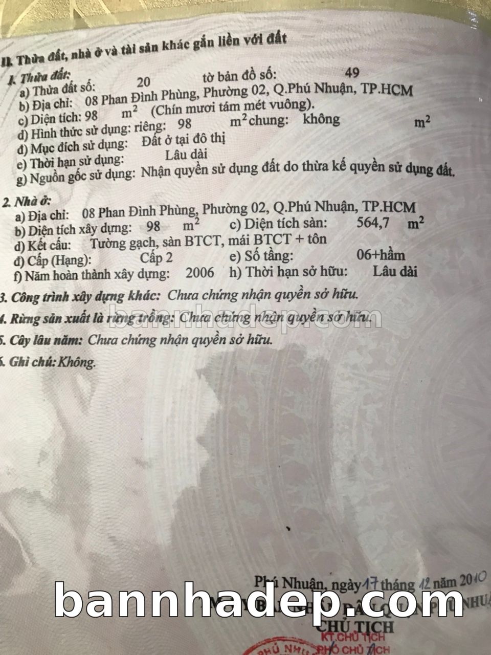 BÁN NHÀ Mặt tiền Số 8 Phan Đình Phùng phường 02 quận Phú Nhuận TP. Hồ Chí Minh – GẦN CÔNG VIÊN GIẢI TRÍ – GIÁ TỐT Cần bán gấp nhà Mặt tiền tại Số 8 Phan Đình Phùng phường 02 quận Phú Nhuận TP. Hồ Chí Minh – tiềm năng kinh doanh cao. Thông tin chi tiết: • Địa chỉ: Số 8 Phan Đình Phùng phường 02 quận Phú Nhuận TP. Hồ Chí Minh • Diện tích: như trong sổ, không gian lý tưởng • Vị trí: Mặt tiền đường Phan Đình Phùng, gần trung tâm thương mại lớn, khu vực sầm uất, tiềm năng kinh doanh cao • Pháp lý: Sổ hồng riêng, không tranh chấp, sẵn sàng giao dịch • Giá bán: Thoả Thuận (còn thương lượng với khách thiện chí) Lợi thế đặc biệt: • Vị trí trung tâm Quận Phú Nhuận • Giao thông thuận tiện, kết nối các quận trung tâm • Phù hợp kinh doanh dài hạn, ổn định • Khu vực sầm uất, tiềm năng kinh doanh tốt