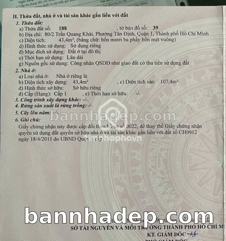 BÁN NHÀ MẶT TIỀN Số 80/2 Trần Quang Khải Phường Tân Định Quận 1 TP. Hồ Chí Minh – GẦN SIÊU THỊ LỚN – GIÁ TỐT 11 TỶ Bán gấp nhà mặt tiền tại Số 80/2 Trần Quang Khải Phường Tân Định Quận 1 TP. Hồ Chí Minh. Thông tin chi tiết: • Địa chỉ: Số 80/2 Trần Quang Khải Phường Tân Định Quận 1 TP. Hồ Chí Minh • Diện tích: 4.0m x 11.0m, không gian rộng rãi • Vị trí: Mặt tiền đường Trần Quang Khải, gần công viên giải trí, khu vực đông dân cư, tiềm năng kinh doanh tốt • Pháp lý: Sổ hồng riêng, quy hoạch rõ ràng, sẵn sàng sang tên • Giá bán: 11 Tỷ (giá tốt, có thể thương lượng) Điểm nổi bật: • Vị trí đắc địa, tiềm năng sinh lời cao • Phù hợp kinh doanh đa dạng ngành nghề • Giao thông thuận tiện, kết nối các quận trung tâm • Phù hợp kinh doanh dài hạn, ổn định