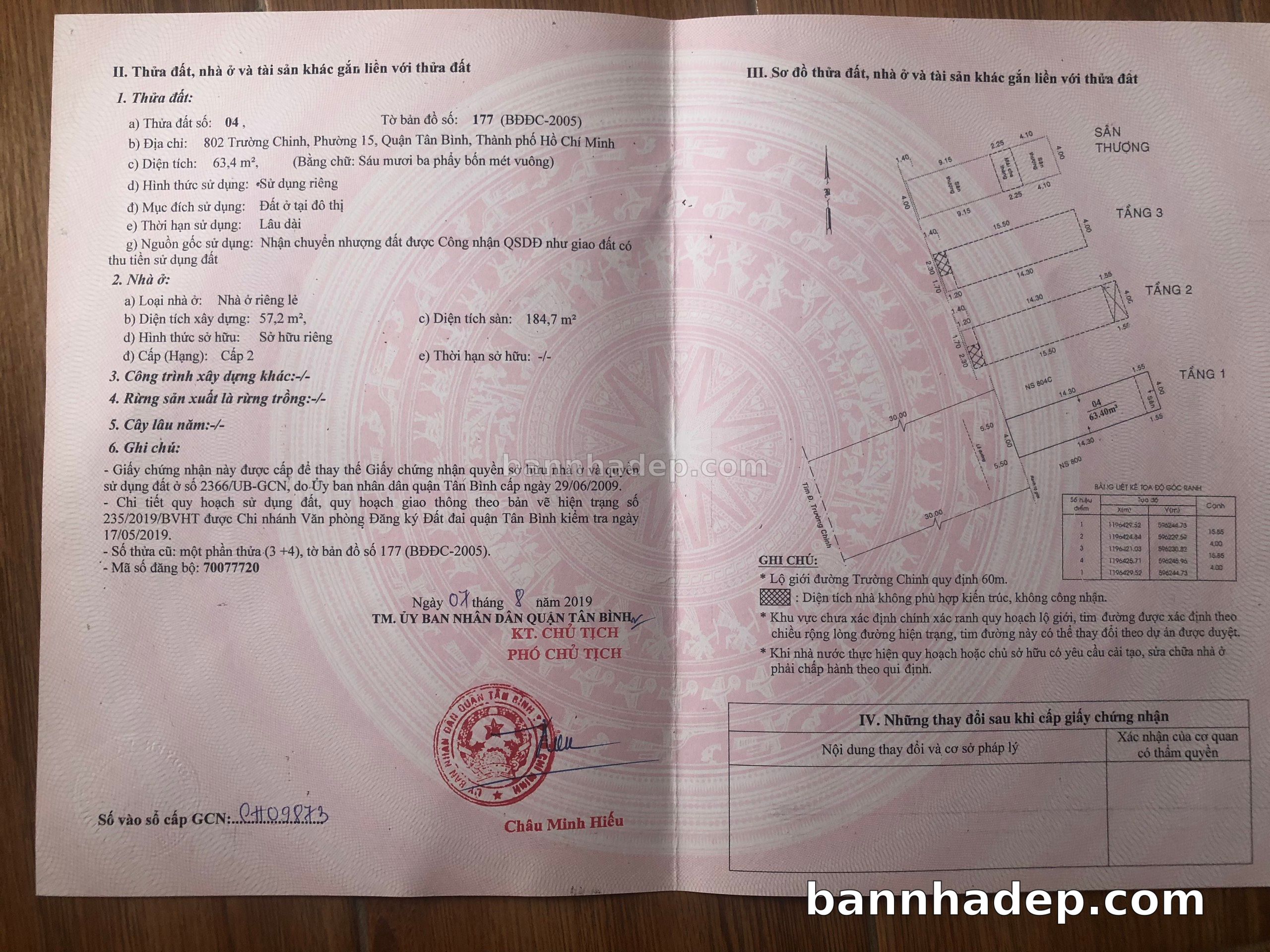 BÁN NHÀ Mặt tiền Số 802 Trường Chinh phường 01 quận Tân Bình TP. Hồ Chí Minh – GẦN CÔNG VIÊN GIẢI TRÍ – GIÁ TỐT Cần bán gấp nhà Mặt tiền tại Số 802 Trường Chinh phường 01 quận Tân Bình TP. Hồ Chí Minh – tiềm năng kinh doanh cao. Thông tin chi tiết: • Địa chỉ: Số 802 Trường Chinh phường 01 quận Tân Bình TP. Hồ Chí Minh • Diện tích: như trong sổ, không gian lý tưởng • Vị trí: Mặt tiền đường Trường Chinh, gần trung tâm thương mại lớn, khu vực sầm uất, tiềm năng kinh doanh cao • Pháp lý: Sổ hồng riêng, không tranh chấp, sẵn sàng giao dịch • Giá bán: Thoả Thuận (còn thương lượng với khách thiện chí) Lợi thế đặc biệt: • Vị trí trung tâm Quận Tân Bình • Giao thông thuận tiện, kết nối các quận trung tâm • Phù hợp kinh doanh dài hạn, ổn định • Khu vực sầm uất, tiềm năng kinh doanh tốt