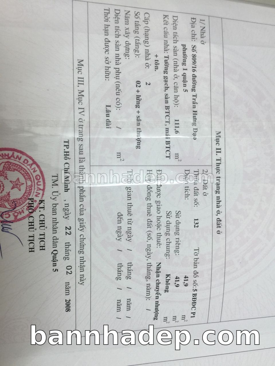 BÁN NHÀ Đường hẻm Số 809/16 Trần Hưng Đạo phường 01 quận 5 TP. Hồ Chí Minh – GẦN CÔNG VIÊN GIẢI TRÍ – GIÁ TỐT Cần bán gấp nhà Đường hẻm tại Số 809/16 Trần Hưng Đạo phường 01 quận 5 TP. Hồ Chí Minh – tiềm năng kinh doanh cao. Thông tin chi tiết: • Địa chỉ: Số 809/16 Trần Hưng Đạo phường 01 quận 5 TP. Hồ Chí Minh • Diện tích: như trong sổ, không gian lý tưởng • Vị trí: Đường hẻm đường Trần Hưng Đạo, gần trung tâm thương mại lớn, khu vực sầm uất, tiềm năng kinh doanh cao • Pháp lý: Sổ hồng riêng, không tranh chấp, sẵn sàng giao dịch • Giá bán: Thoả Thuận (còn thương lượng với khách thiện chí) Lợi thế đặc biệt: • Vị trí trung tâm Quận 5 • Giao thông thuận tiện, kết nối các quận trung tâm • Phù hợp kinh doanh dài hạn, ổn định • Khu vực sầm uất, tiềm năng kinh doanh tốt