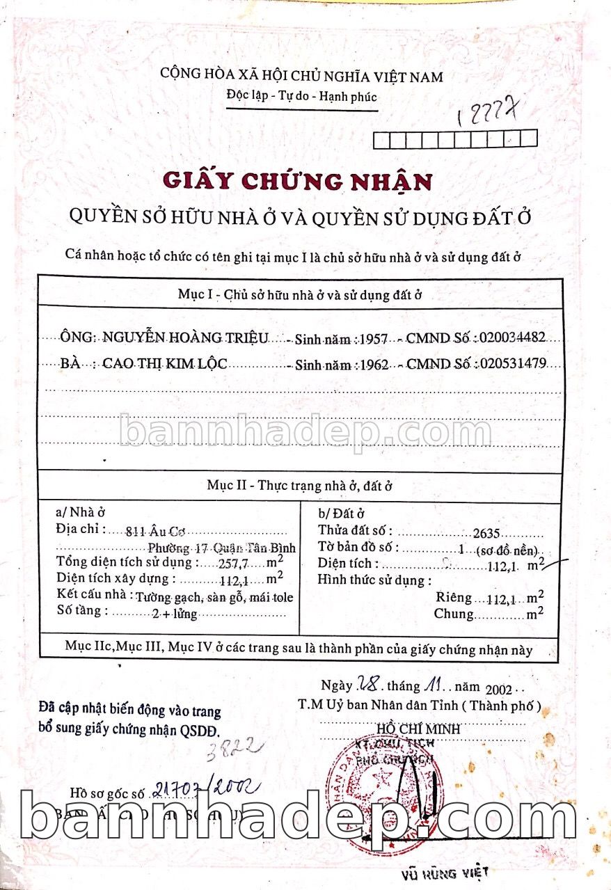 BÁN NHÀ Mặt tiền Số 811 Âu Cơ phường 01 quận Tân Bình TP. Hồ Chí Minh – GẦN CÔNG VIÊN GIẢI TRÍ – GIÁ TỐT Cần bán gấp nhà Mặt tiền tại Số 811 Âu Cơ phường 01 quận Tân Bình TP. Hồ Chí Minh – tiềm năng kinh doanh cao. Thông tin chi tiết: • Địa chỉ: Số 811 Âu Cơ phường 01 quận Tân Bình TP. Hồ Chí Minh • Diện tích: như trong sổ, không gian lý tưởng • Vị trí: Mặt tiền đường Âu Cơ, gần trung tâm thương mại lớn, khu vực sầm uất, tiềm năng kinh doanh cao • Pháp lý: Sổ hồng riêng, không tranh chấp, sẵn sàng giao dịch • Giá bán: Thoả Thuận (còn thương lượng với khách thiện chí) Lợi thế đặc biệt: • Vị trí trung tâm Quận Tân Bình • Giao thông thuận tiện, kết nối các quận trung tâm • Phù hợp kinh doanh dài hạn, ổn định • Khu vực sầm uất, tiềm năng kinh doanh tốt