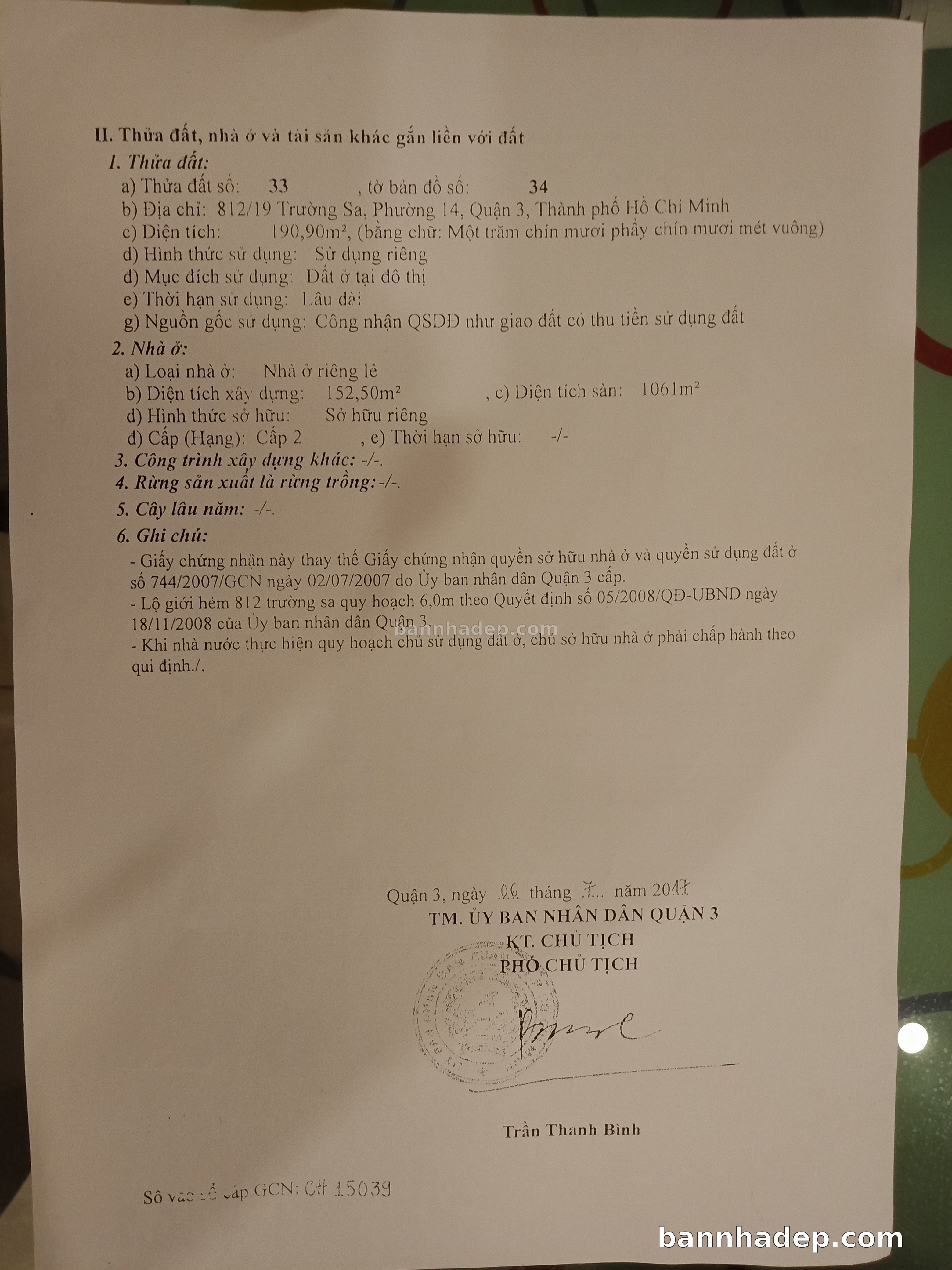 BÁN NHÀ Đường hẻm Số 812/19 Trường Sa phường 01 quận 3 TP. Hồ Chí Minh – GẦN CÔNG VIÊN GIẢI TRÍ – GIÁ TỐT Cần bán gấp nhà Đường hẻm tại Số 812/19 Trường Sa phường 01 quận 3 TP. Hồ Chí Minh – tiềm năng kinh doanh cao. Thông tin chi tiết: • Địa chỉ: Số 812/19 Trường Sa phường 01 quận 3 TP. Hồ Chí Minh • Diện tích: như trong sổ, không gian lý tưởng • Vị trí: Đường hẻm đường Trường Sa, gần trung tâm thương mại lớn, khu vực sầm uất, tiềm năng kinh doanh cao • Pháp lý: Sổ hồng riêng, không tranh chấp, sẵn sàng giao dịch • Giá bán: Thoả Thuận (còn thương lượng với khách thiện chí) Lợi thế đặc biệt: • Vị trí trung tâm Quận 3 • Giao thông thuận tiện, kết nối các quận trung tâm • Phù hợp kinh doanh dài hạn, ổn định • Khu vực sầm uất, tiềm năng kinh doanh tốt