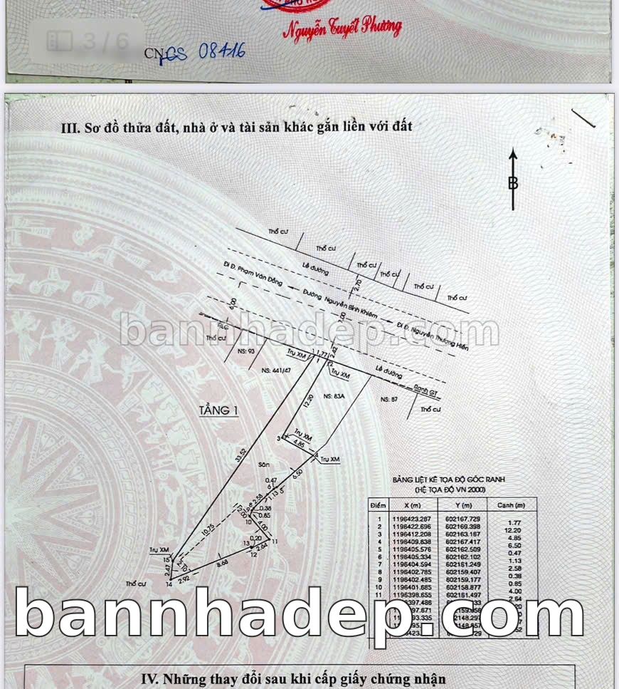 CẦN BÁN GẤP NHÀ MẶT TIỀN Số 83-83A Nguyễn Bỉnh Khiêm Phường 1 Quận Gò Vấp TP. Hồ Chí Minh – GẦN CÔNG VIÊN – GIÁ 50 TỶ Bán nhà mặt tiền tại Số 83-83A Nguyễn Bỉnh Khiêm Phường 1 Quận Gò Vấp TP. Hồ Chí Minh – vị trí đắc địa. Thông tin chi tiết: • Địa chỉ: Số 83-83A Nguyễn Bỉnh Khiêm Phường 1 Quận Gò Vấp TP. Hồ Chí Minh • Diện tích: 15.0m x 33.0m, mặt tiền rộng • Vị trí: Mặt tiền đường Nguyễn Bỉnh Khiêm sầm uất, gần siêu thị lớn, khu vực dân cư đông đúc, lưu lượng xe cộ lớn – cực kỳ thích hợp kinh doanh mọi ngành nghề: cửa hàng thời trang, café, spa, nha khoa, văn phòng đại diện • Pháp lý: Sổ hồng riêng, sẵn sàng sang tên • Giá bán: 50 Tỷ (giá tốt cho khách thiện chí) Lợi thế đặc biệt: • Vị trí đắc địa, tiềm năng sinh lời cao • Phù hợp kinh doanh đa dạng ngành nghề • Khu vực sầm uất, lưu lượng khách hàng lớn • Phù hợp kinh doanh dài hạn, ổn định