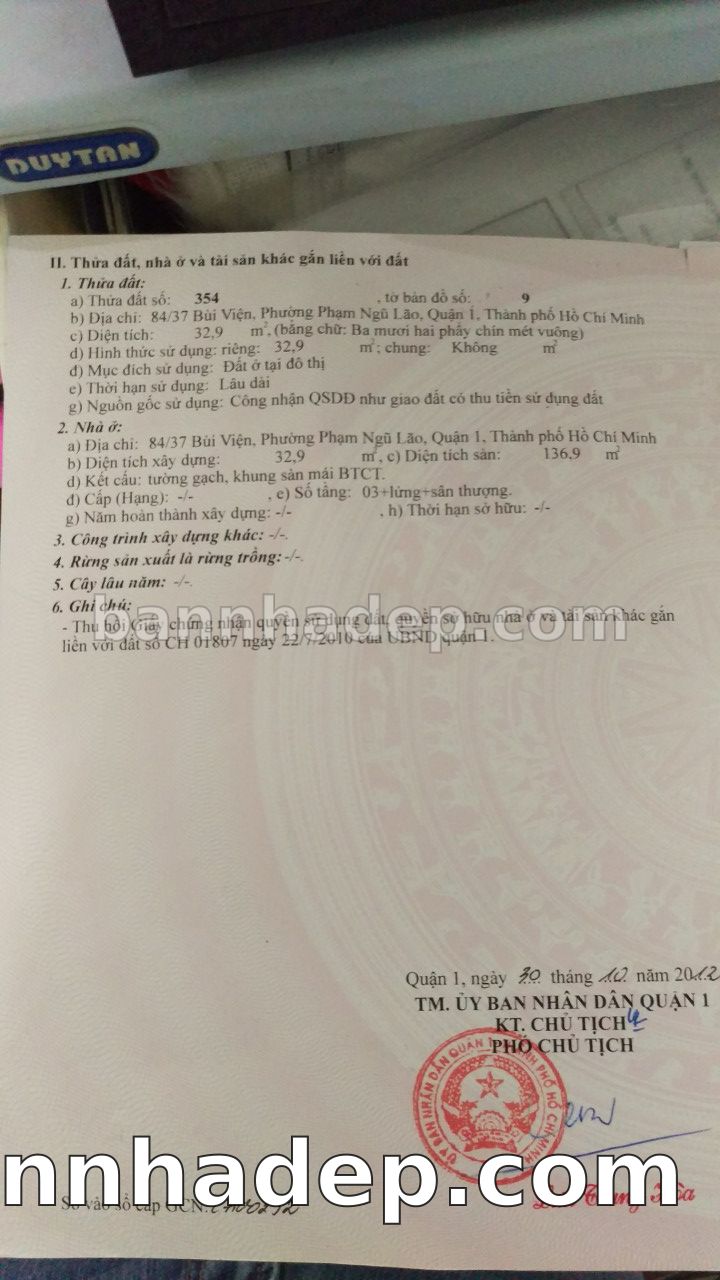 Bán nhà 84/37 Bùi Viện phường Phạm Ngũ Lão quận 1
