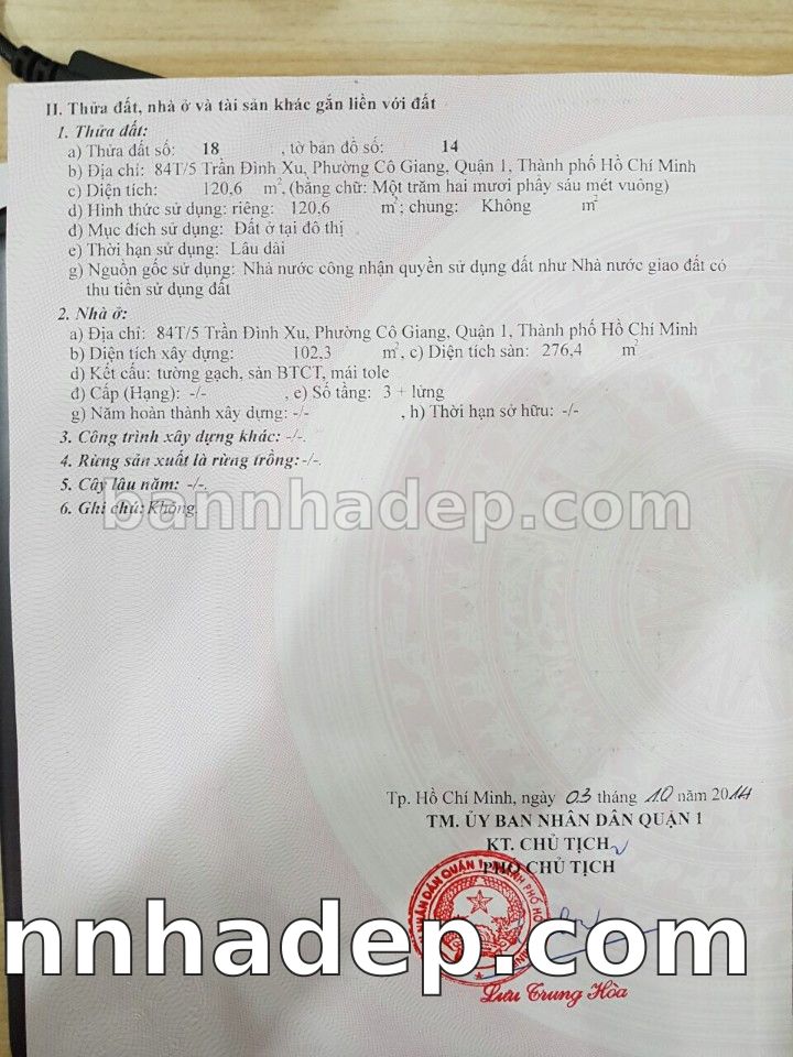Bán nhà 84T/5 Trần Đình Xu phường Nguyễn Cư Trinh quận 1