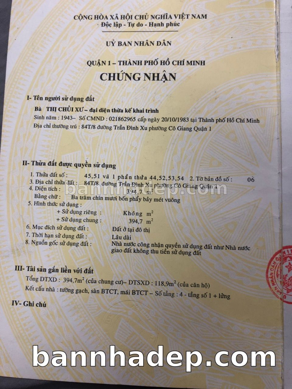 BÁN NHÀ Đường hẻm Số 84T/8 Trần Đình Xu phường Cô Giang quận 1 TP. Hồ Chí Minh – GẦN CÔNG VIÊN GIẢI TRÍ – GIÁ TỐT Cần bán gấp nhà Đường hẻm tại Số 84T/8 Trần Đình Xu phường Cô Giang quận 1 TP. Hồ Chí Minh – tiềm năng kinh doanh cao. Thông tin chi tiết: • Địa chỉ: Số 84T/8 Trần Đình Xu phường Cô Giang quận 1 TP. Hồ Chí Minh • Diện tích: như trong sổ, không gian lý tưởng • Vị trí: Đường hẻm đường Trần Đình Xu, gần trung tâm thương mại lớn, khu vực sầm uất, tiềm năng kinh doanh cao • Pháp lý: Sổ hồng riêng, không tranh chấp, sẵn sàng giao dịch • Giá bán: Thoả Thuận (còn thương lượng với khách thiện chí) Lợi thế đặc biệt: • Vị trí trung tâm Quận 1 • Giao thông thuận tiện, kết nối các quận trung tâm • Phù hợp kinh doanh dài hạn, ổn định • Khu vực sầm uất, tiềm năng kinh doanh tốt