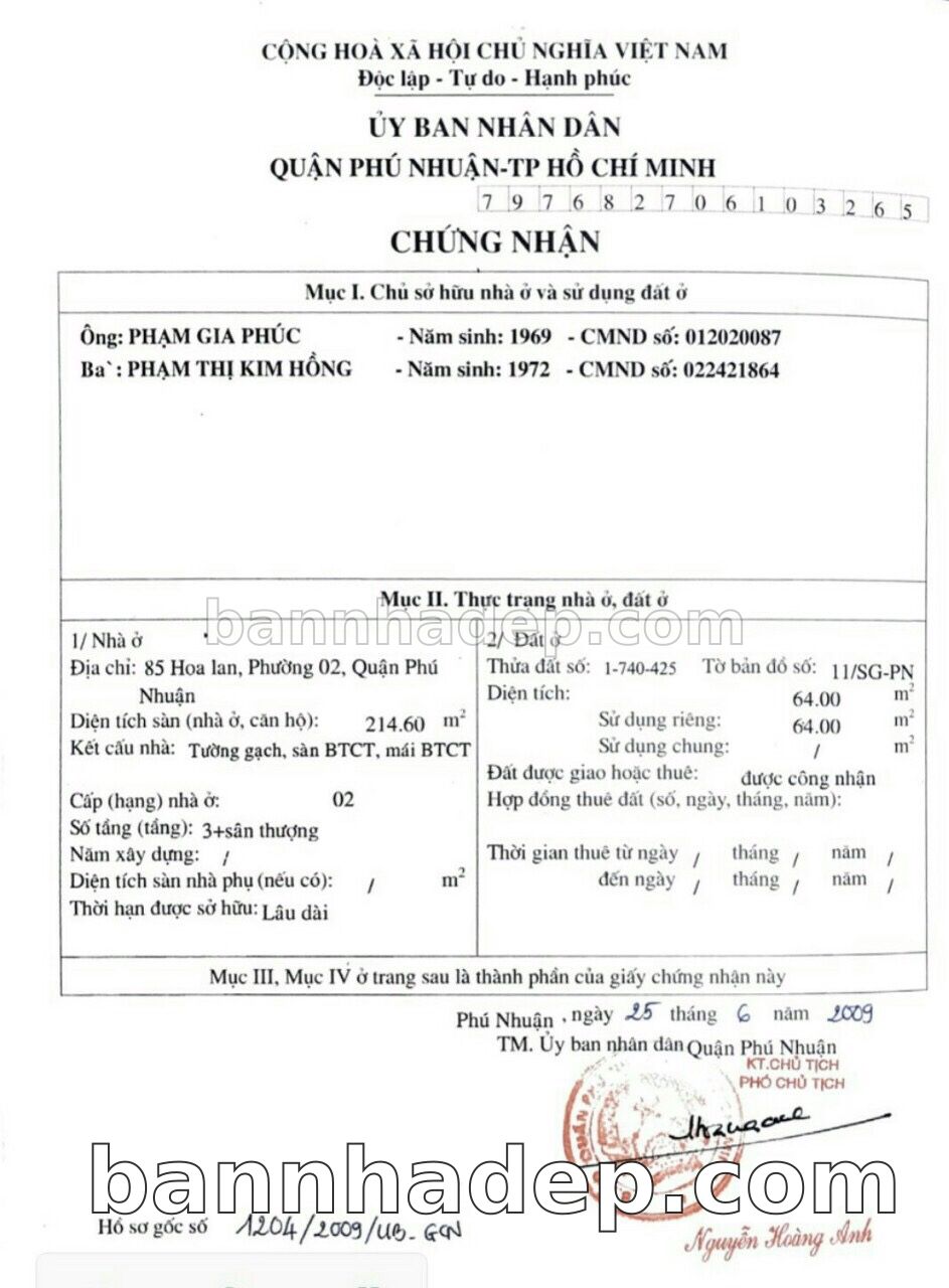 BÁN NHÀ Mặt tiền Số 85 Hoa Lan phường 02 quận Phú Nhuận TP. Hồ Chí Minh – GẦN CÔNG VIÊN GIẢI TRÍ – GIÁ TỐT Cần bán gấp nhà Mặt tiền tại Số 85 Hoa Lan phường 02 quận Phú Nhuận TP. Hồ Chí Minh – tiềm năng kinh doanh cao. Thông tin chi tiết: • Địa chỉ: Số 85 Hoa Lan phường 02 quận Phú Nhuận TP. Hồ Chí Minh • Diện tích: như trong sổ, không gian lý tưởng • Vị trí: Mặt tiền đường Hoa Lan, gần trung tâm thương mại lớn, khu vực sầm uất, tiềm năng kinh doanh cao • Pháp lý: Sổ hồng riêng, không tranh chấp, sẵn sàng giao dịch • Giá bán: Thoả Thuận (còn thương lượng với khách thiện chí) Lợi thế đặc biệt: • Vị trí trung tâm Quận Phú Nhuận • Giao thông thuận tiện, kết nối các quận trung tâm • Phù hợp kinh doanh dài hạn, ổn định • Khu vực sầm uất, tiềm năng kinh doanh tốt