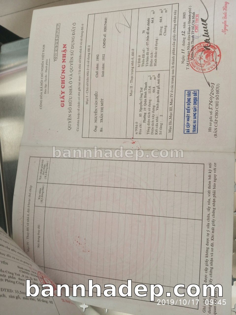 Bán nhà 429 Tờ bản đồ số 36 phường 01 quận Bình Thạnh
