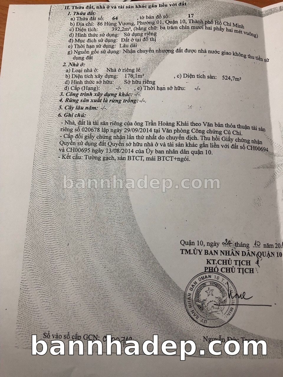 BÁN NHÀ Mặt tiền Số 86 Hùng Vương phường 01 quận 10 TP. Hồ Chí Minh – GẦN CÔNG VIÊN GIẢI TRÍ – GIÁ TỐT Cần bán gấp nhà Mặt tiền tại Số 86 Hùng Vương phường 01 quận 10 TP. Hồ Chí Minh – tiềm năng kinh doanh cao. Thông tin chi tiết: • Địa chỉ: Số 86 Hùng Vương phường 01 quận 10 TP. Hồ Chí Minh • Diện tích: như trong sổ, không gian lý tưởng • Vị trí: Mặt tiền đường Hùng Vương, gần trung tâm thương mại lớn, khu vực sầm uất, tiềm năng kinh doanh cao • Pháp lý: Sổ hồng riêng, không tranh chấp, sẵn sàng giao dịch • Giá bán: Thoả Thuận (còn thương lượng với khách thiện chí) Lợi thế đặc biệt: • Vị trí trung tâm Quận 10 • Giao thông thuận tiện, kết nối các quận trung tâm • Phù hợp kinh doanh dài hạn, ổn định • Khu vực sầm uất, tiềm năng kinh doanh tốt