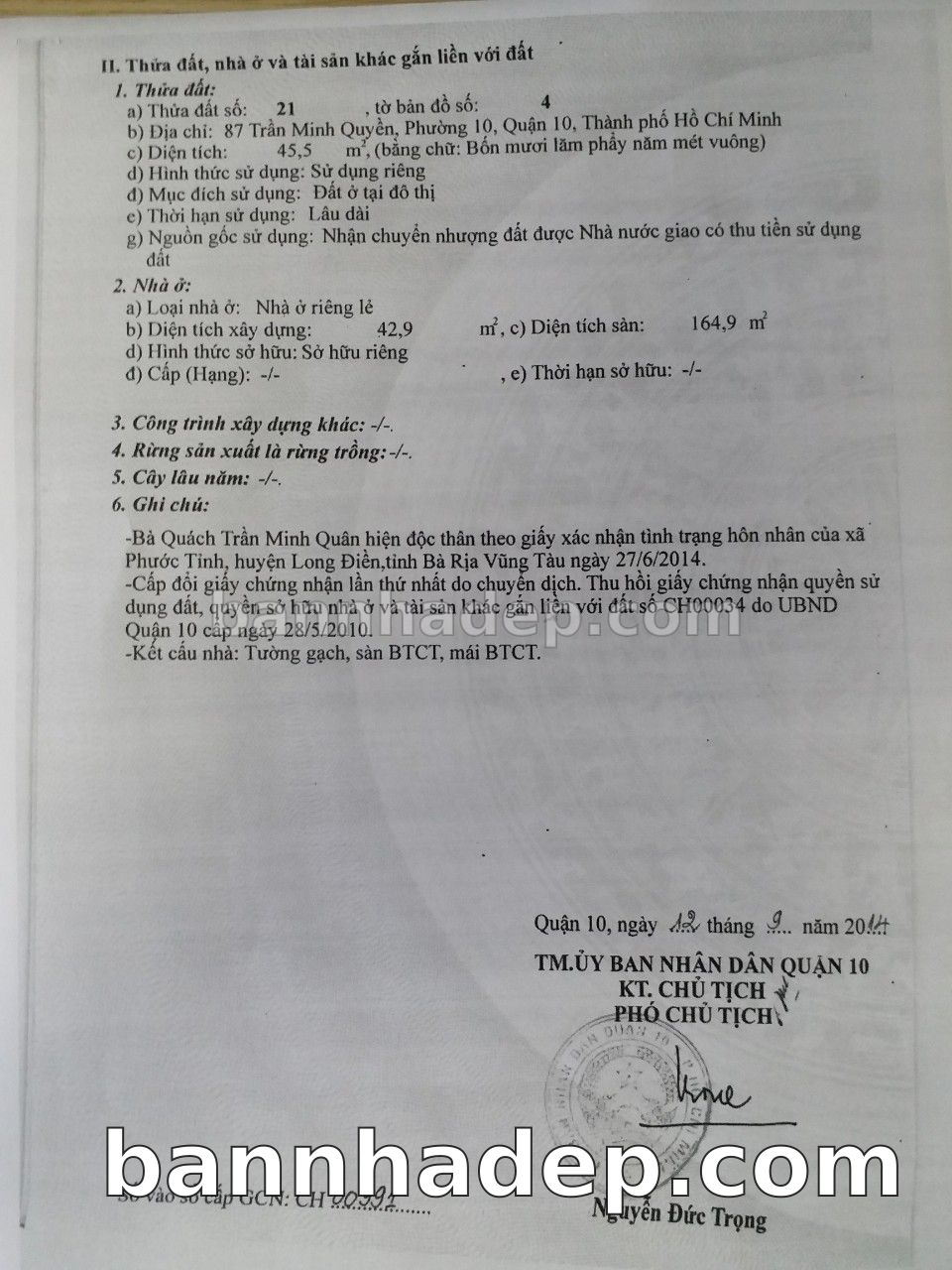 BÁN NHÀ Mặt tiền Số 87 Trần Minh Quyền phường 01 quận 10 TP. Hồ Chí Minh – GẦN CÔNG VIÊN GIẢI TRÍ – GIÁ TỐT Cần bán gấp nhà Mặt tiền tại Số 87 Trần Minh Quyền phường 01 quận 10 TP. Hồ Chí Minh – tiềm năng kinh doanh cao. Thông tin chi tiết: • Địa chỉ: Số 87 Trần Minh Quyền phường 01 quận 10 TP. Hồ Chí Minh • Diện tích: như trong sổ, không gian lý tưởng • Vị trí: Mặt tiền đường Trần Minh Quyền, gần trung tâm thương mại lớn, khu vực sầm uất, tiềm năng kinh doanh cao • Pháp lý: Sổ hồng riêng, không tranh chấp, sẵn sàng giao dịch • Giá bán: Thoả Thuận (còn thương lượng với khách thiện chí) Lợi thế đặc biệt: • Vị trí trung tâm Quận 10 • Giao thông thuận tiện, kết nối các quận trung tâm • Phù hợp kinh doanh dài hạn, ổn định • Khu vực sầm uất, tiềm năng kinh doanh tốt