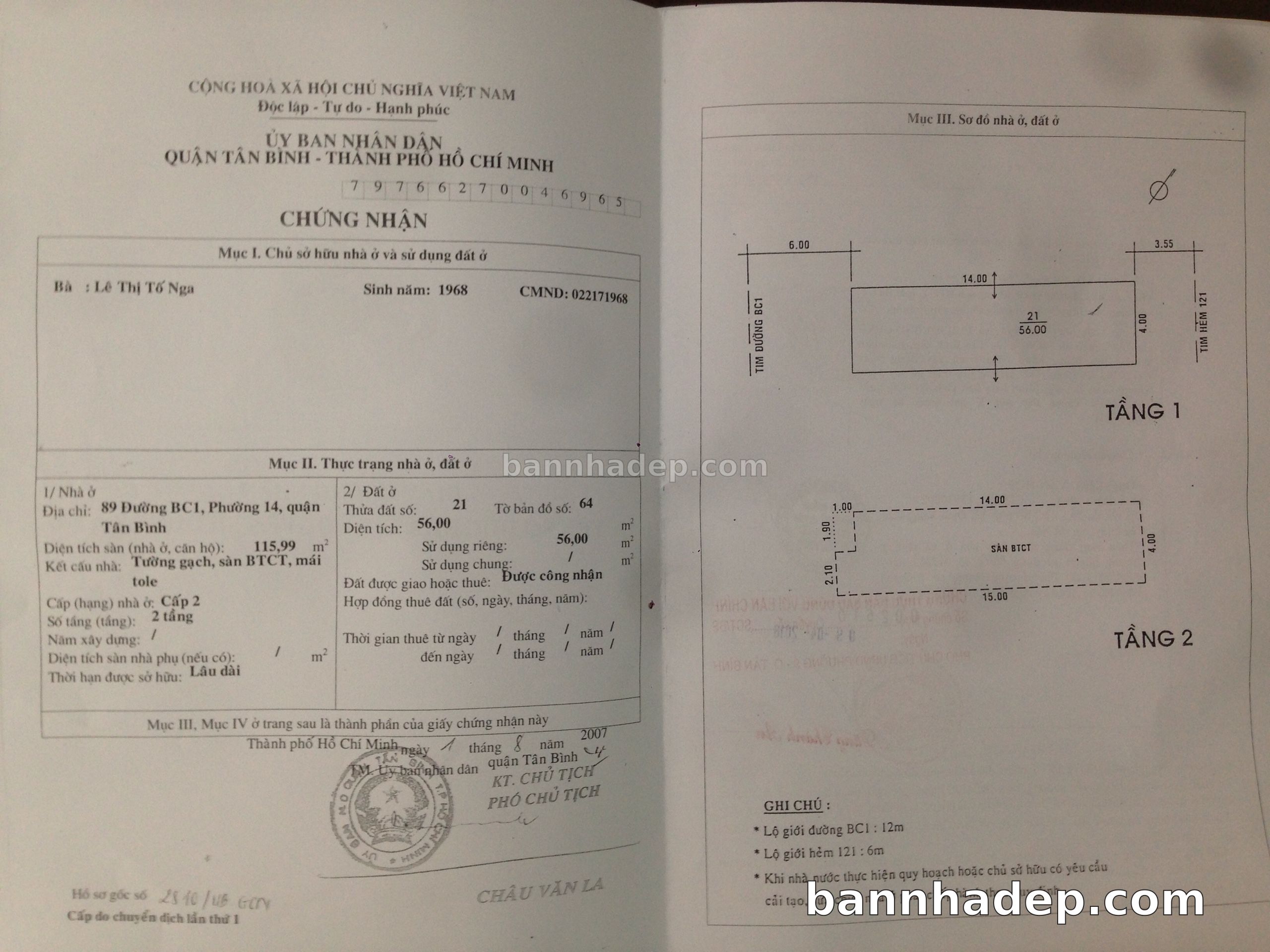 Bán nhà 89 Bàu Cát 1 phường 01 quận Tân Bình