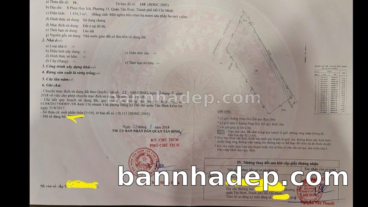 Địa chỉ: 8Thửa: 16Tờ: 110 Phan Huy Ích phường 15 quận Tân Bình