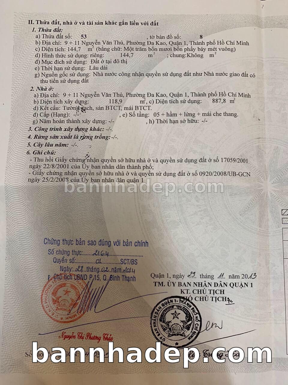Bán nhà 9-11 Nguyễn Văn Thủ Đa Kao quận 1