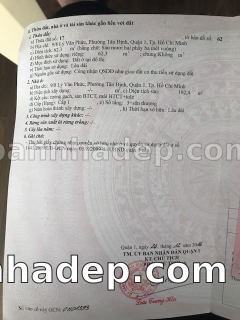 BÁN NHÀ Đường hẻm Số 9/8 Lý Văn Phức phường Tân Định quận 1 TP. Hồ Chí Minh – GẦN CÔNG VIÊN GIẢI TRÍ – GIÁ TỐT Cần bán gấp nhà Đường hẻm tại Số 9/8 Lý Văn Phức phường Tân Định quận 1 TP. Hồ Chí Minh – tiềm năng kinh doanh cao. Thông tin chi tiết: • Địa chỉ: Số 9/8 Lý Văn Phức phường Tân Định quận 1 TP. Hồ Chí Minh • Diện tích: như trong sổ, không gian lý tưởng • Vị trí: Đường hẻm đường Lý Văn Phức, gần trung tâm thương mại lớn, khu vực sầm uất, tiềm năng kinh doanh cao • Pháp lý: Sổ hồng riêng, không tranh chấp, sẵn sàng giao dịch • Giá bán: Thoả Thuận (còn thương lượng với khách thiện chí) Lợi thế đặc biệt: • Vị trí trung tâm Quận 1 • Giao thông thuận tiện, kết nối các quận trung tâm • Phù hợp kinh doanh dài hạn, ổn định • Khu vực sầm uất, tiềm năng kinh doanh tốt