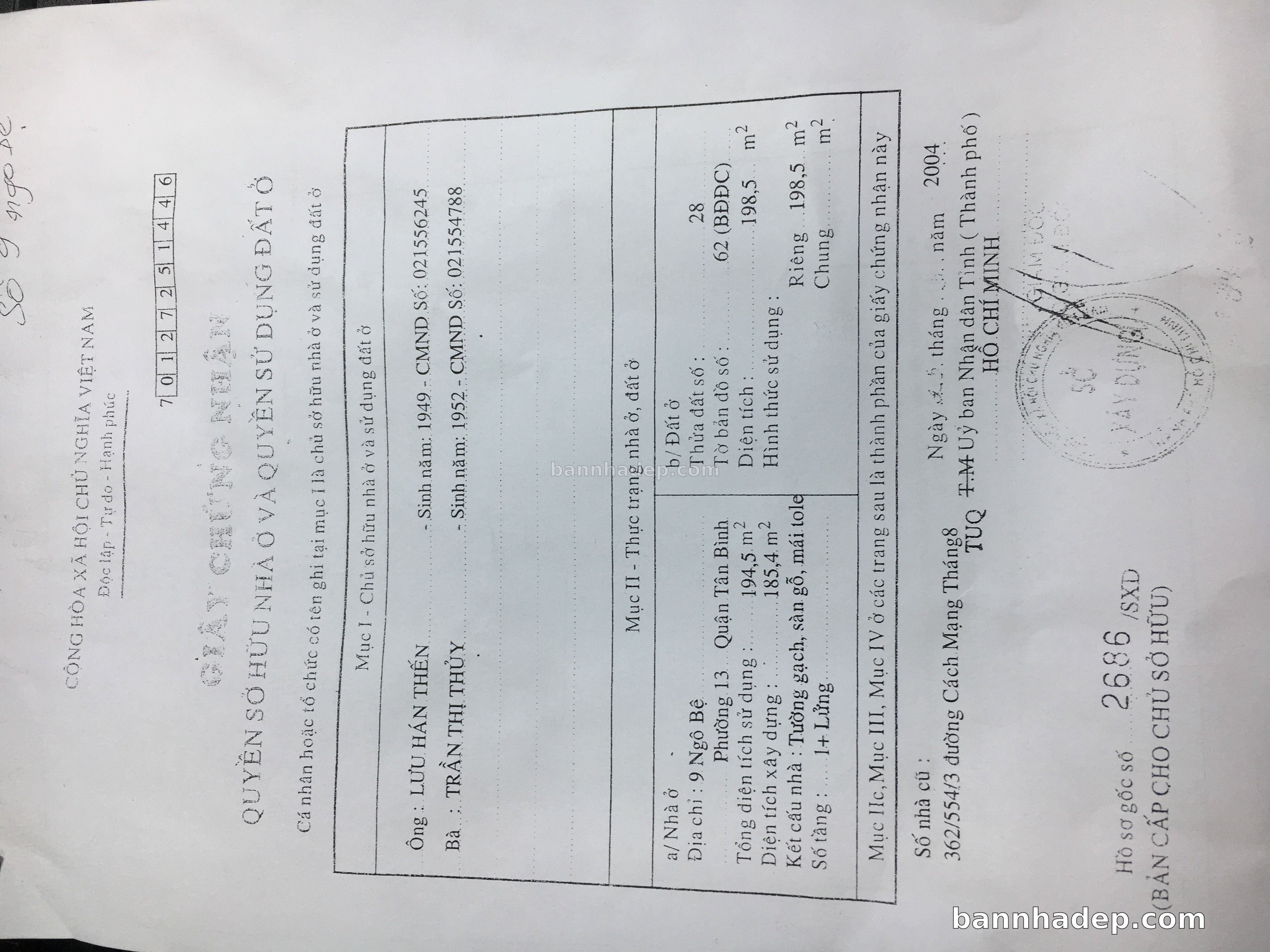 BÁN NHÀ Mặt tiền Số 9 Ngô Bệ phường 01 quận Tân Bình TP. Hồ Chí Minh – GẦN CÔNG VIÊN GIẢI TRÍ – GIÁ TỐT Cần bán gấp nhà Mặt tiền tại Số 9 Ngô Bệ phường 01 quận Tân Bình TP. Hồ Chí Minh – tiềm năng kinh doanh cao. Thông tin chi tiết: • Địa chỉ: Số 9 Ngô Bệ phường 01 quận Tân Bình TP. Hồ Chí Minh • Diện tích: như trong sổ, không gian lý tưởng • Vị trí: Mặt tiền đường Ngô Bệ, gần trung tâm thương mại lớn, khu vực sầm uất, tiềm năng kinh doanh cao • Pháp lý: Sổ hồng riêng, không tranh chấp, sẵn sàng giao dịch • Giá bán: Thoả Thuận (còn thương lượng với khách thiện chí) Lợi thế đặc biệt: • Vị trí trung tâm Quận Tân Bình • Giao thông thuận tiện, kết nối các quận trung tâm • Phù hợp kinh doanh dài hạn, ổn định • Khu vực sầm uất, tiềm năng kinh doanh tốt