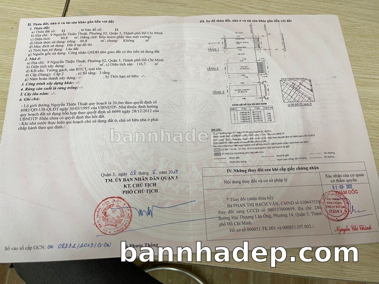 BÁN NHÀ MẶT TIỀN Số 9 Nguyễn Thiện Thuật Phường 2 Quận 3 TP. Hồ Chí Minh – GẦN CÔNG VIÊN – GIÁ TỐT 26 TỶ Bán nhà mặt tiền tại Số 9 Nguyễn Thiện Thuật Phường 2 Quận 3 TP. Hồ Chí Minh. Thông tin chi tiết: • Địa chỉ: Số 9 Nguyễn Thiện Thuật Phường 2 Quận 3 TP. Hồ Chí Minh • Diện tích: 4.0m x 12.0m, không gian rộng rãi • Vị trí: Mặt tiền đường Nguyễn Thiện Thuật, đối diện trường học, khu vực sầm uất, tiềm năng kinh doanh cao • Pháp lý: Sổ hồng riêng, thổ cư 100%, sẵn sàng sang tên • Giá bán: 26 Tỷ (giá tốt, có thể thương lượng) Ưu thế cạnh tranh: • Vị trí trung tâm Quận 3, thuận tiện kết nối Quận 3, 5, 10 • Khu vực sầm uất, tiềm năng kinh doanh tốt • Mặt tiền rộng, giá trị khai thác thương mại cao • Khu vực phát triển, tiềm năng tăng trưởng cao