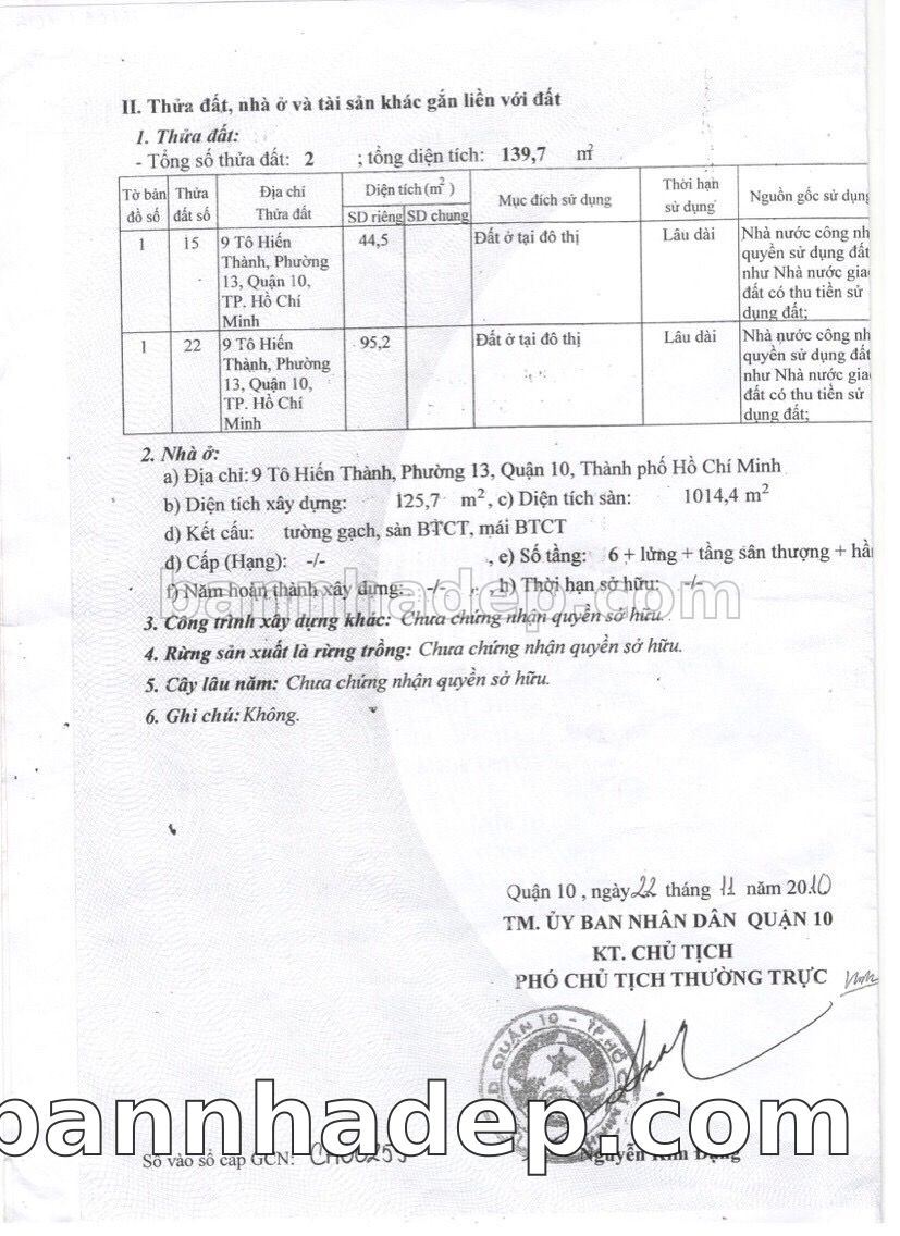 Bán nhà 9 Tô Hiến Thành phường 01 quận 10