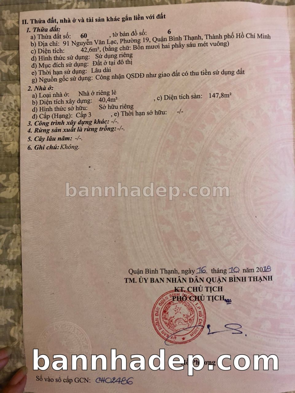 Bán nhà Thửa đất số 250, Tờ bản đồ 37 Nguyễn Ngọc Phương phường 01 quận Bình Thạnh