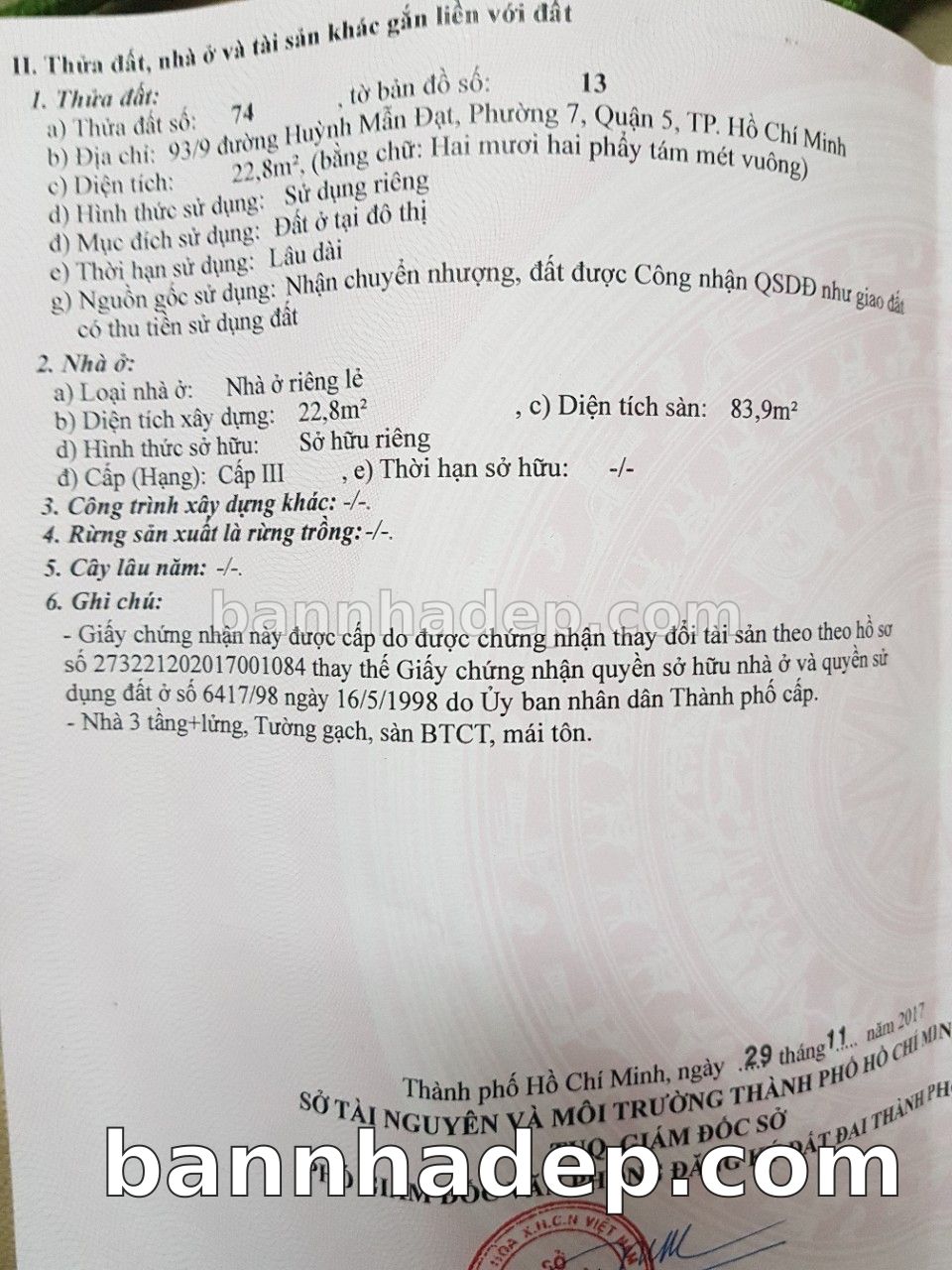 Bán nhà 93/9 Huỳnh Mẫn Đạt phường 07 quận 5