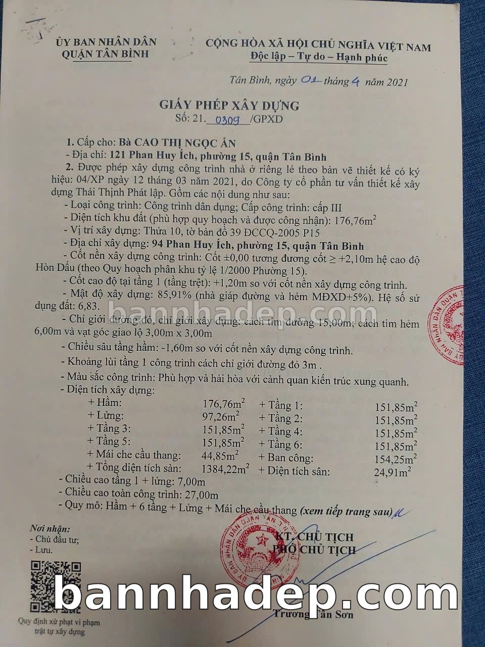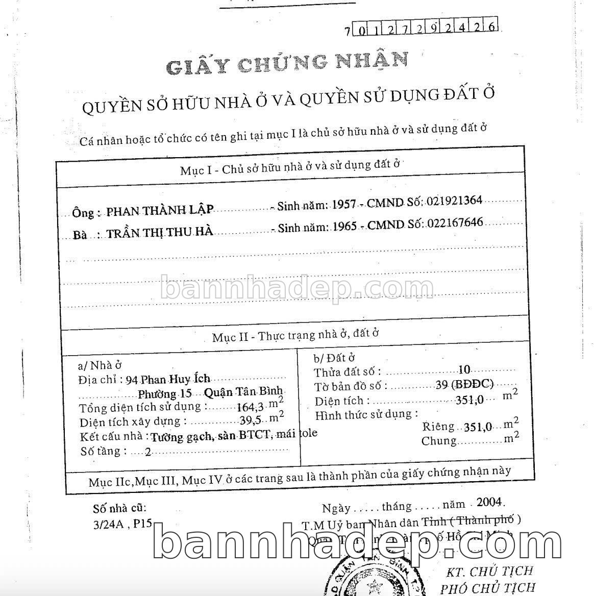 Bán nhà 94 Phan Huy Ích phường 15 quận Tân Bình