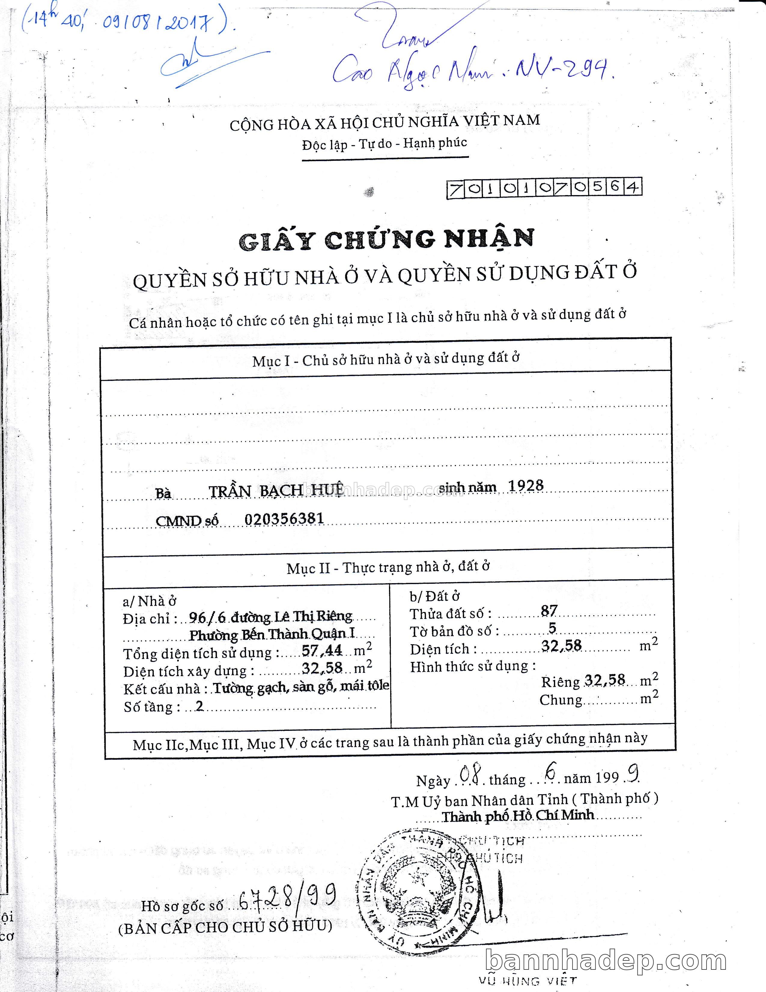 Bán nhà 96/6 Lê Thị Riêng phường Bến Thành quận 1