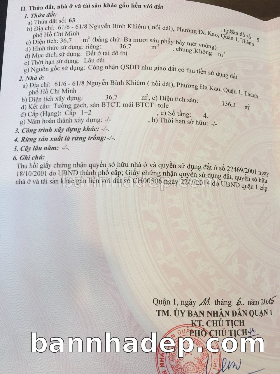 Bán nhà 97 Hoàng Sa phường Đa Kao quận 1